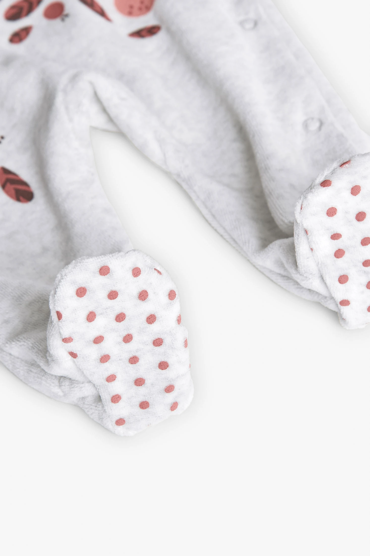 Velvet baby romper in raw colour, perfect for your baby during the cooler months. Crafted from a soft material, it offers an unparalleled sense of comfort and warmth. Its charming animal print adds a playful and fun touch. Designed with long sleeves, it is ideal for keeping your little one warm on any outing. Available in sizes from 0 months to 2 years, it is a versatile option for daily use, perfectly pairing with hats.