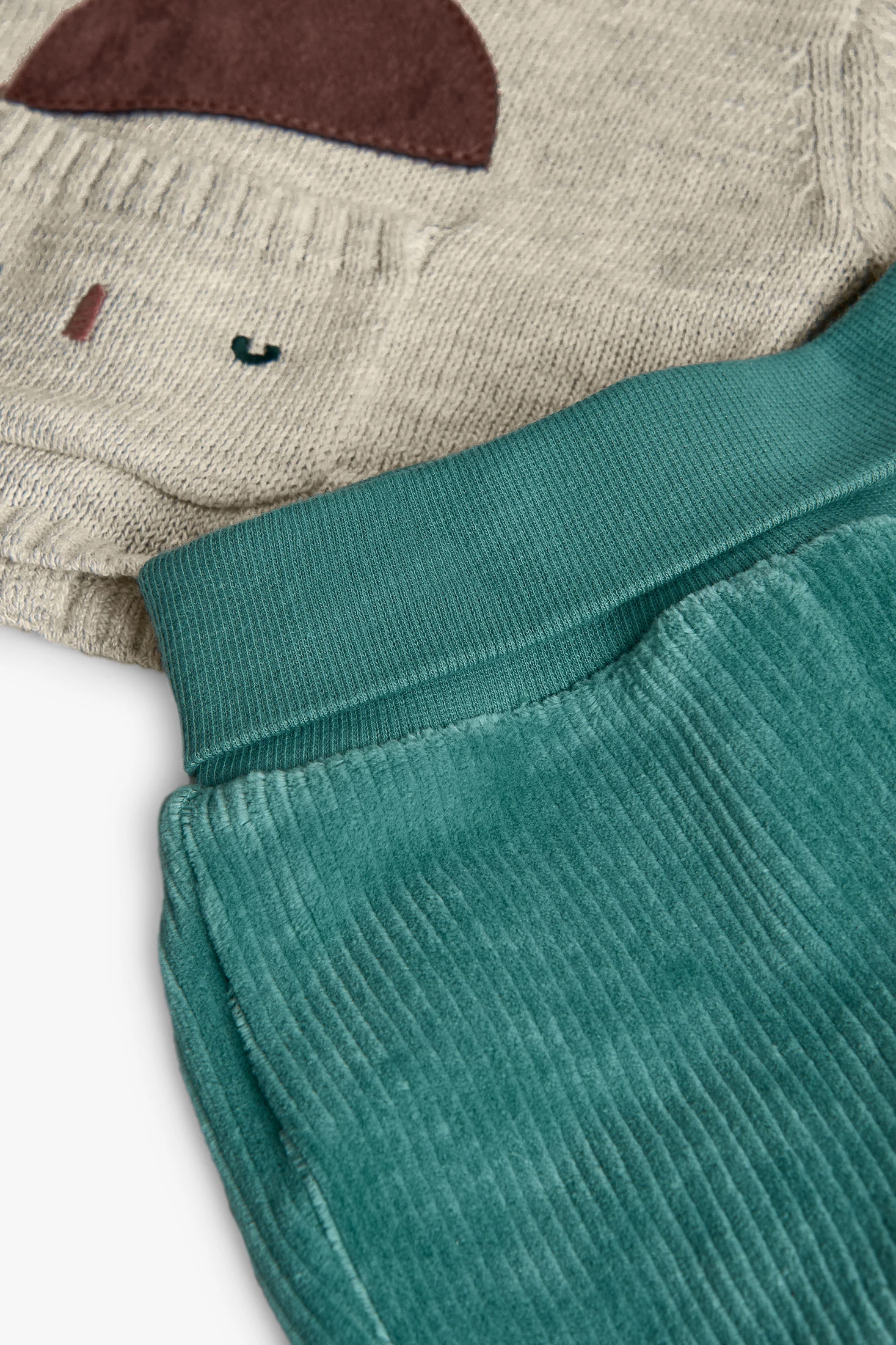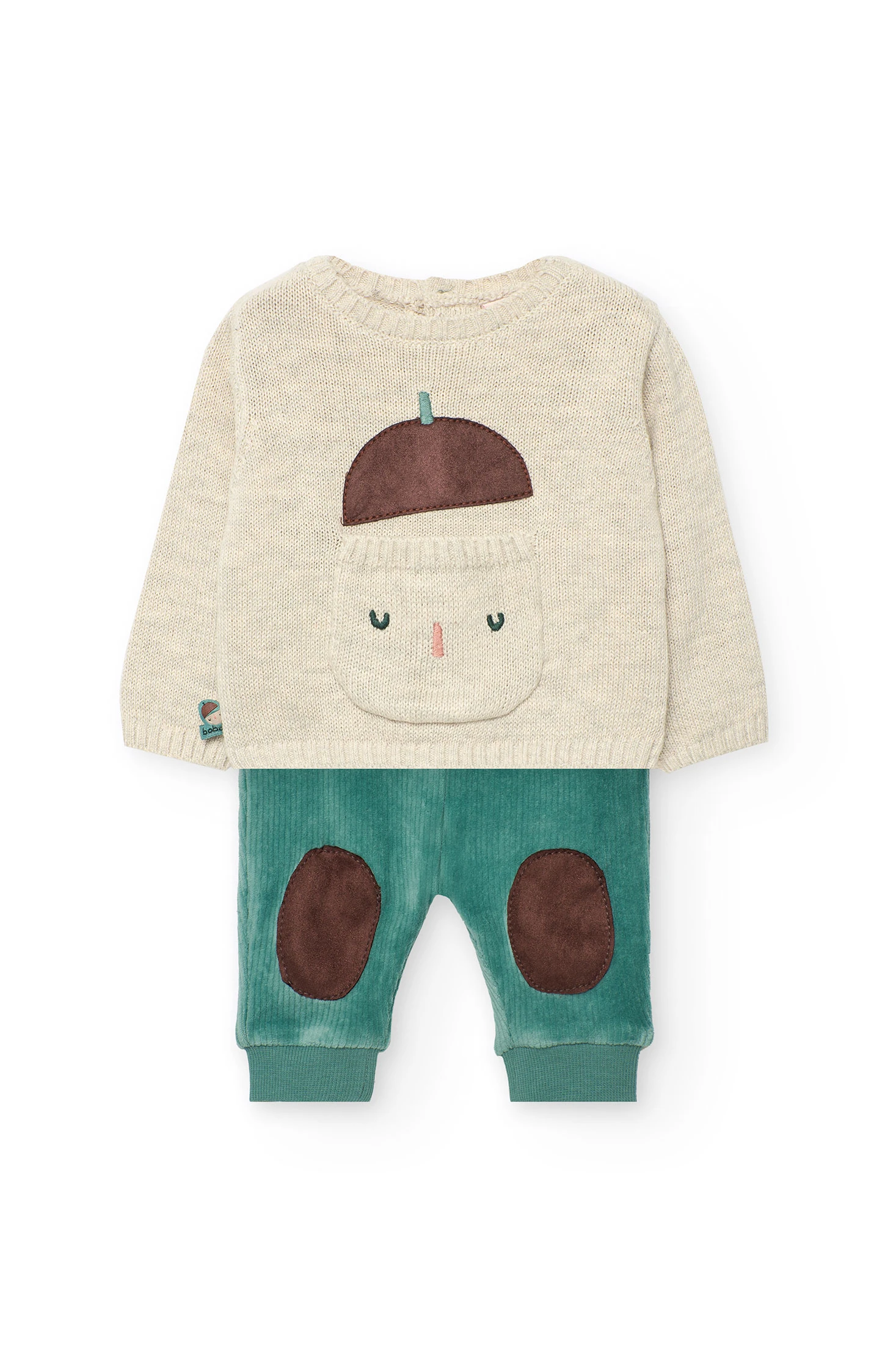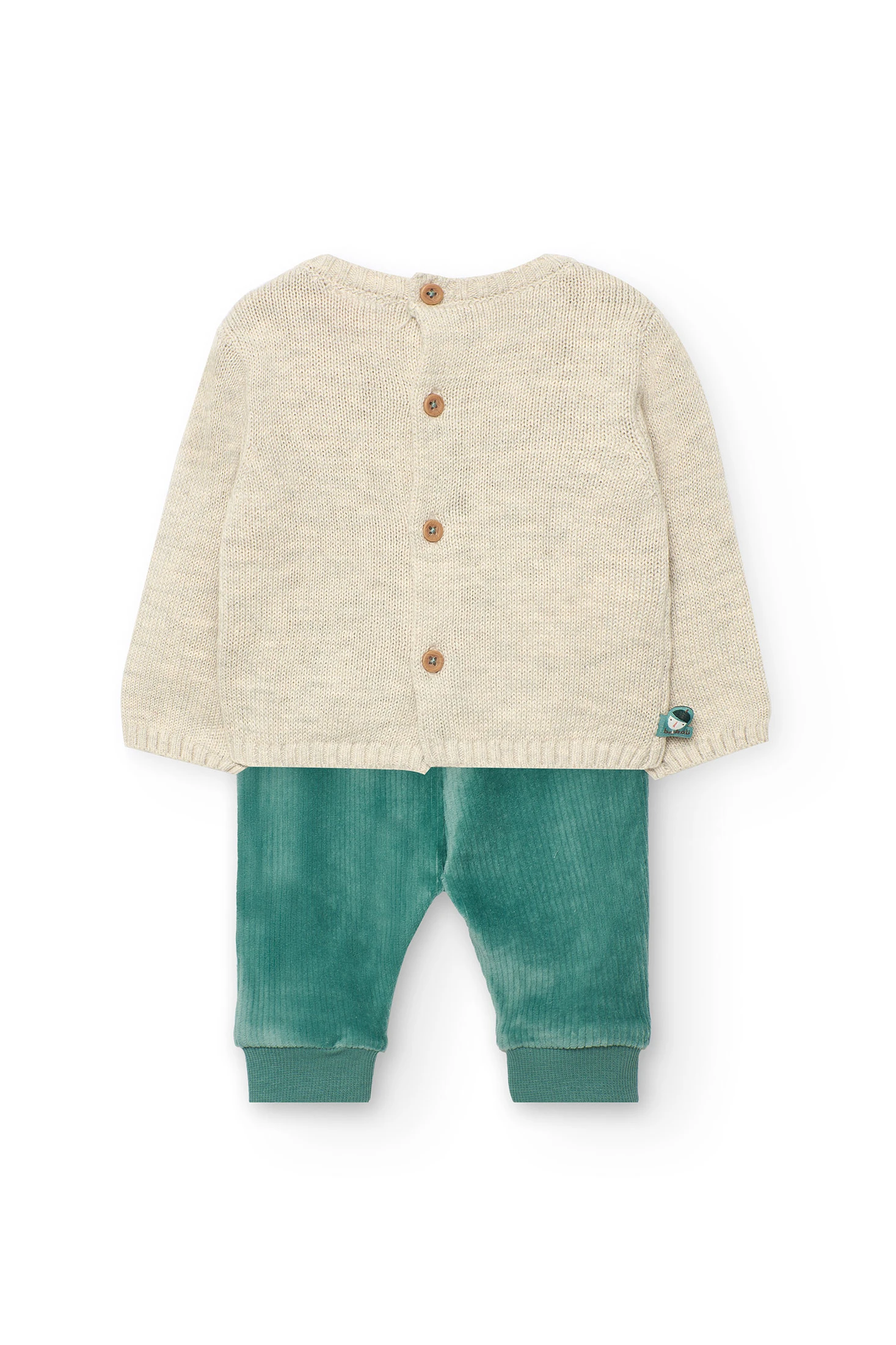 Baby set in beige tone, perfect for the autumn and winter seasons. This knitted set includes a jumper with delicate embroidered details and matching trousers, ensuring maximum comfort for your little one. Made from soft and high-quality materials, it is ideal for keeping your baby warm during the colder months. Available in sizes for newborns up to 2 years, it easily pairs with other accessories to complete a cosy and stylish look.