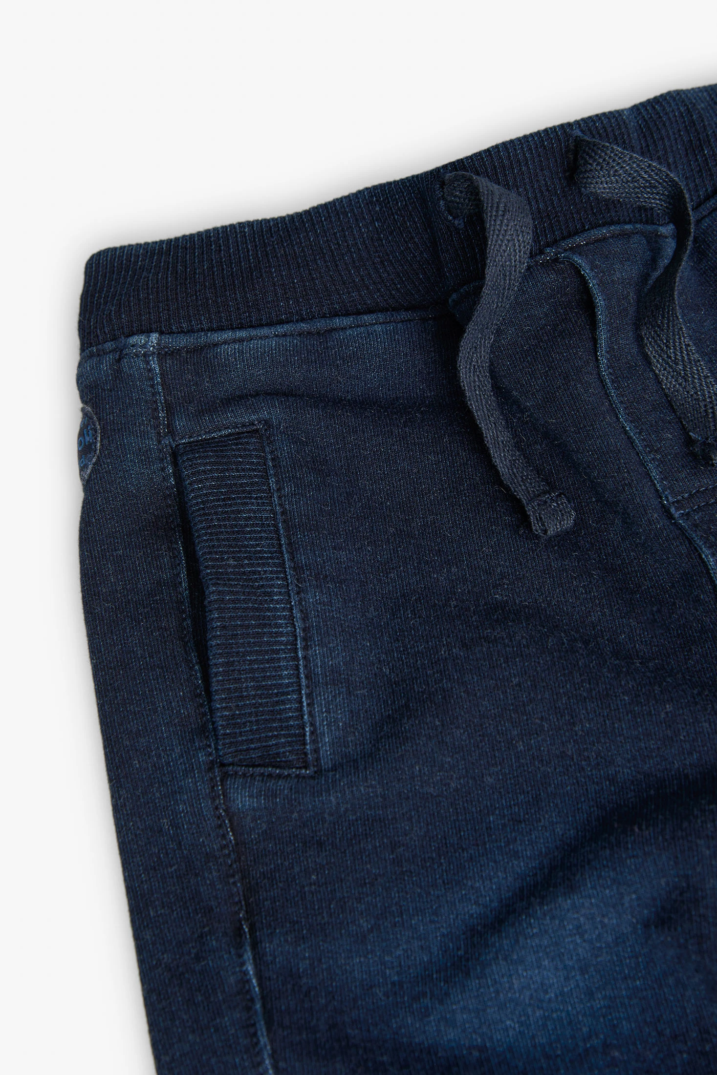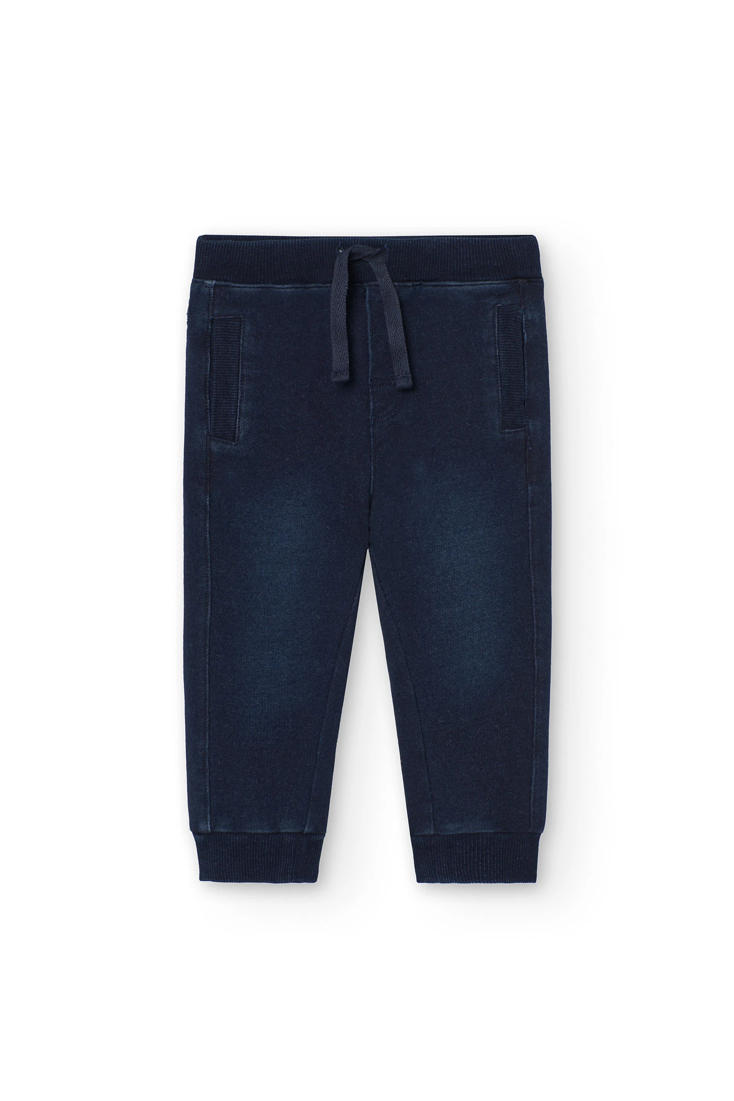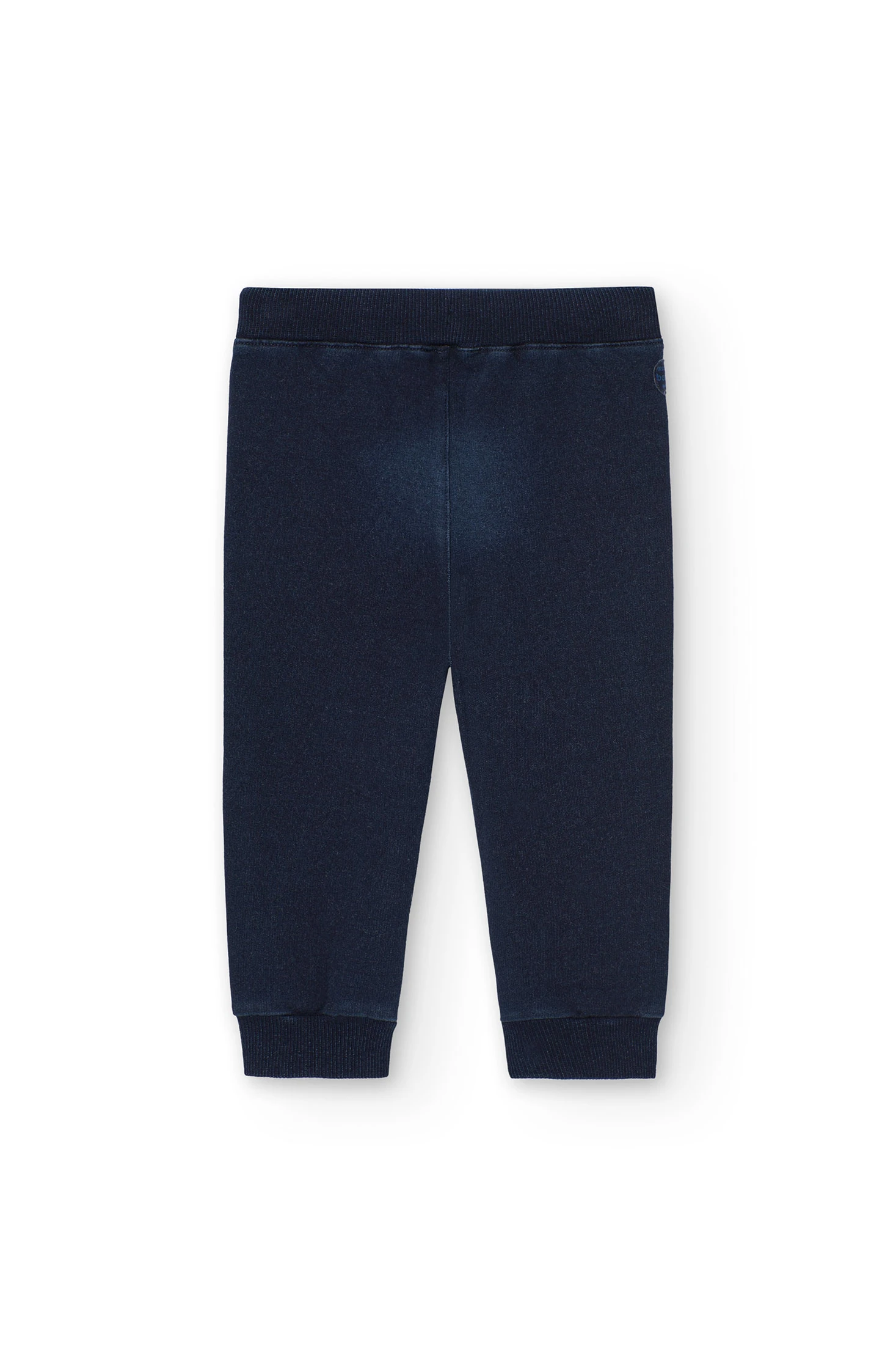 This is a plain, denim-style baby boy's fleece trousers, suitable for children aged from 12 months to 8 years. Made from knit fabric, it's perfect for in-between seasons. The trousers are navy blue, a versatile colour that can be easily matched with other items. The design is simple and practical, making it a great choice for everyday wear. The trousers are available in various sizes, ensuring a comfortable fit for your child as they grow. Please note, this product does not include any brand or BCI mentions.