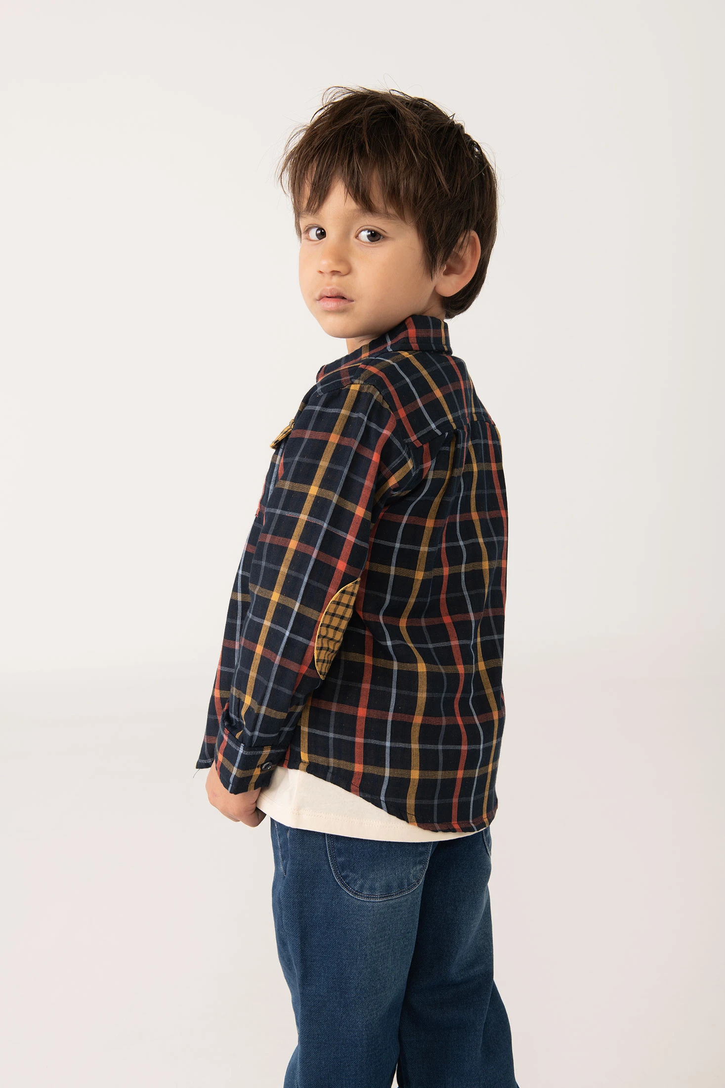 Checked knit shirt for boys, ideal for cooler seasons, offering style and comfort in one garment. Crafted from a soft and warm fabric, its long sleeves are perfect for keeping your little one cosy. It is available in sizes from 12 months to 10 years, accommodating your child's growth. Pair it with solid-coloured trousers or jeans for a classic and cosy look. The check pattern adds a timeless touch, making it a versatile option for any occasion.
