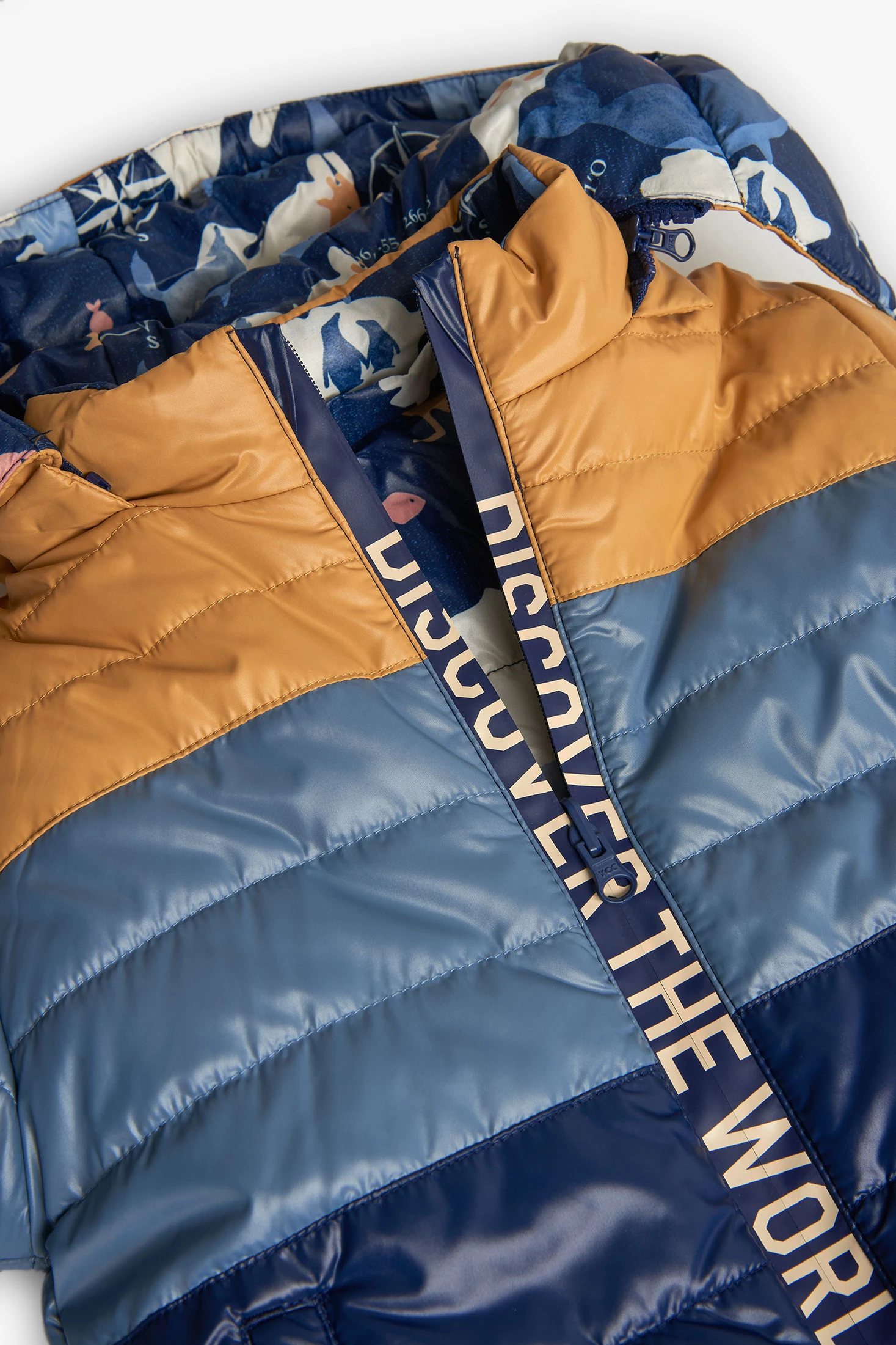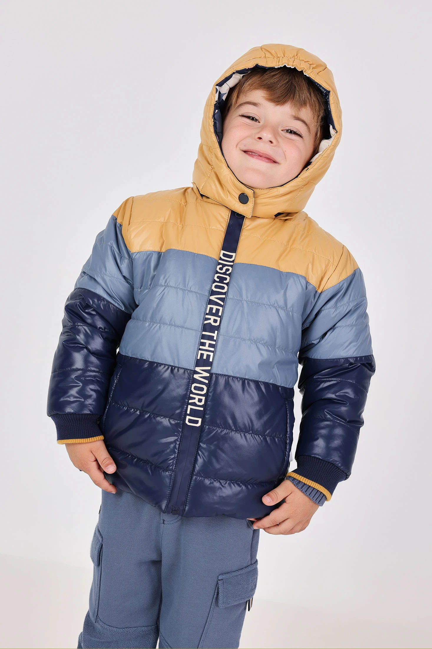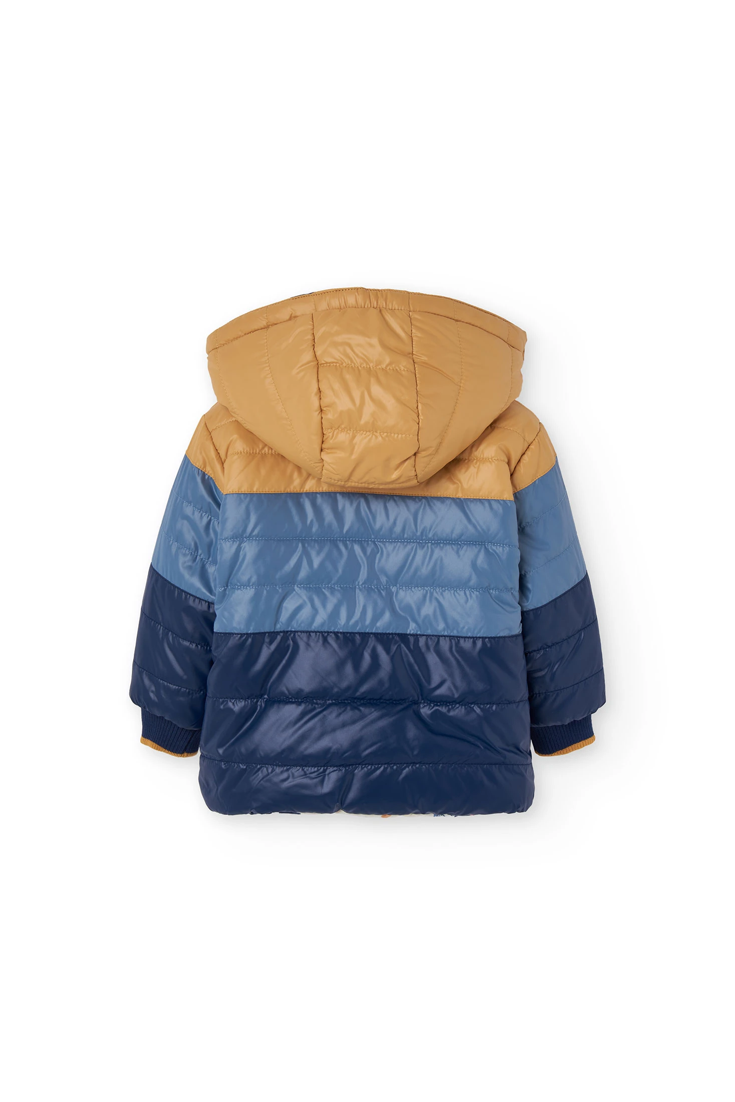 Reversible parka for boys in navy blue, perfect for autumn and winter, featuring an animal print on the inside that allows for an easy change of style. With a detachable hood and front zip, this garment provides protection and comfort against the cold. Made with weather-resistant materials, it ensures warmth on the chilliest days. Available in sizes from 12 months to 10 years, it is ideal for pairing with casual outfits, ensuring that little ones stay warm and stylish while playing outdoors.