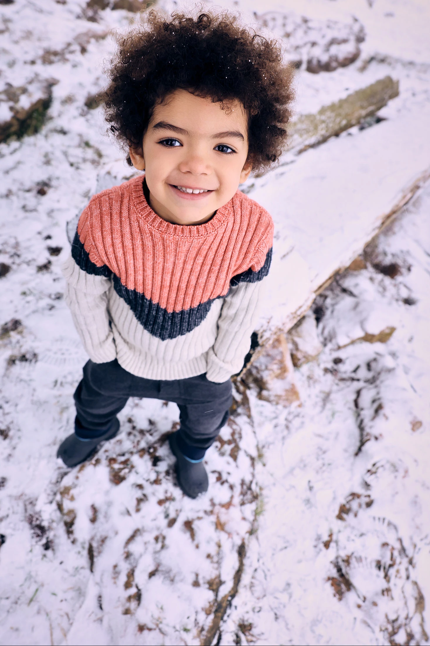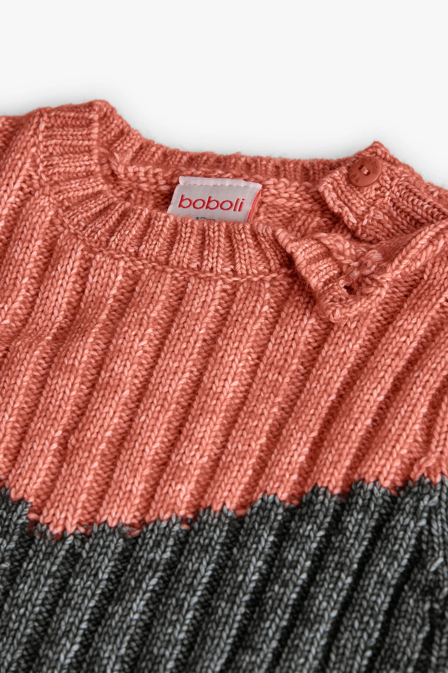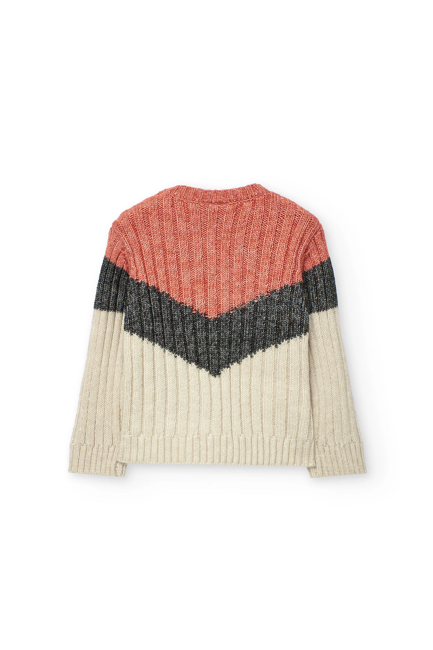 Knitted jumper for boys in orange, ideal for autumn and winter thanks to its soft fabric that provides comfort and warmth. The design in terracotta, black, and cream tones adds a modern and distinctive style to the children's wardrobe. Its long sleeves and round neck offer extra warmth on cold days. Available in sizes from 12 months to 10 years, it allows for versatility and style at any event. Perfect to pair with jeans or joggers, creating a casual and contemporary look for your little one.