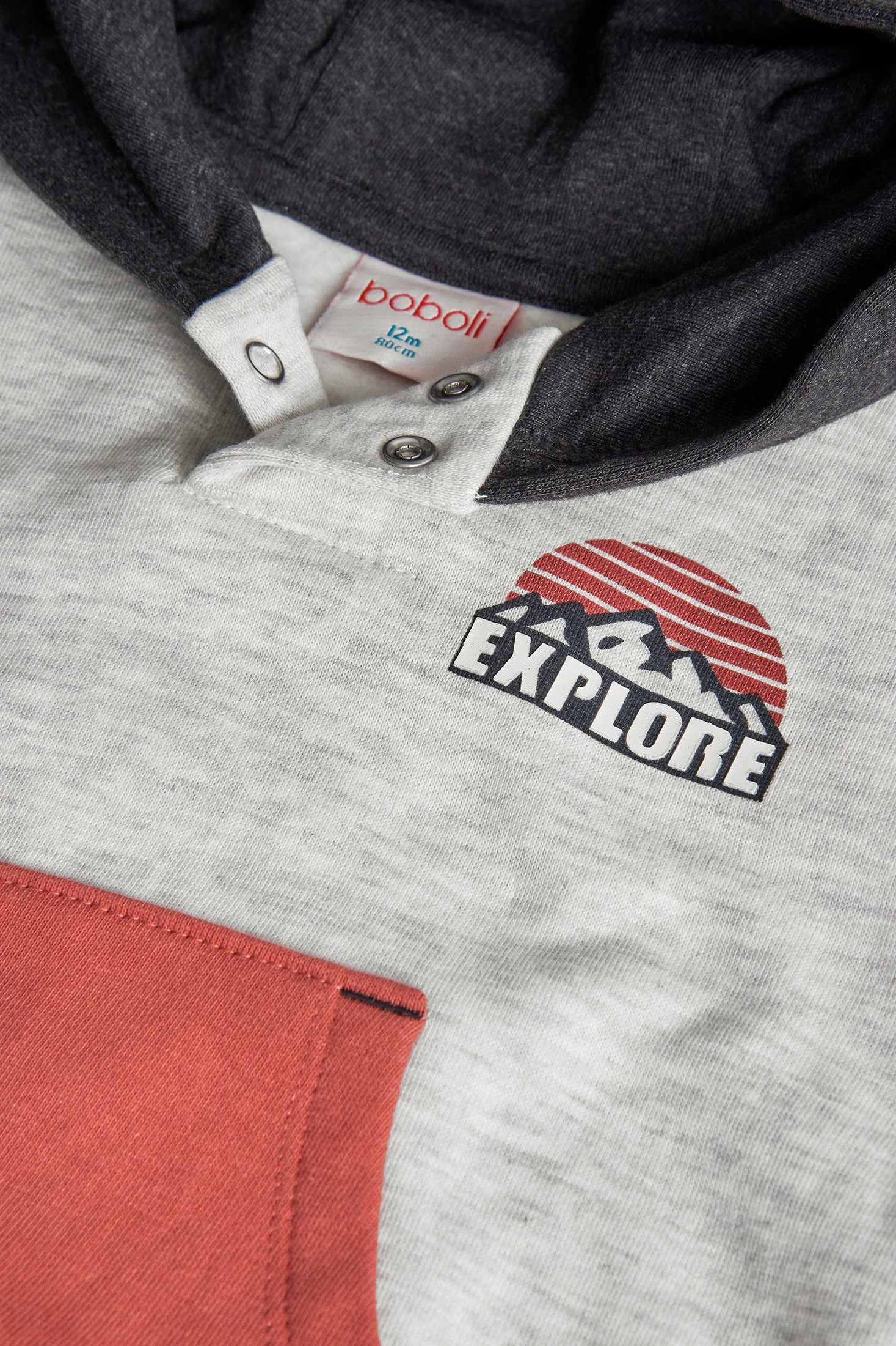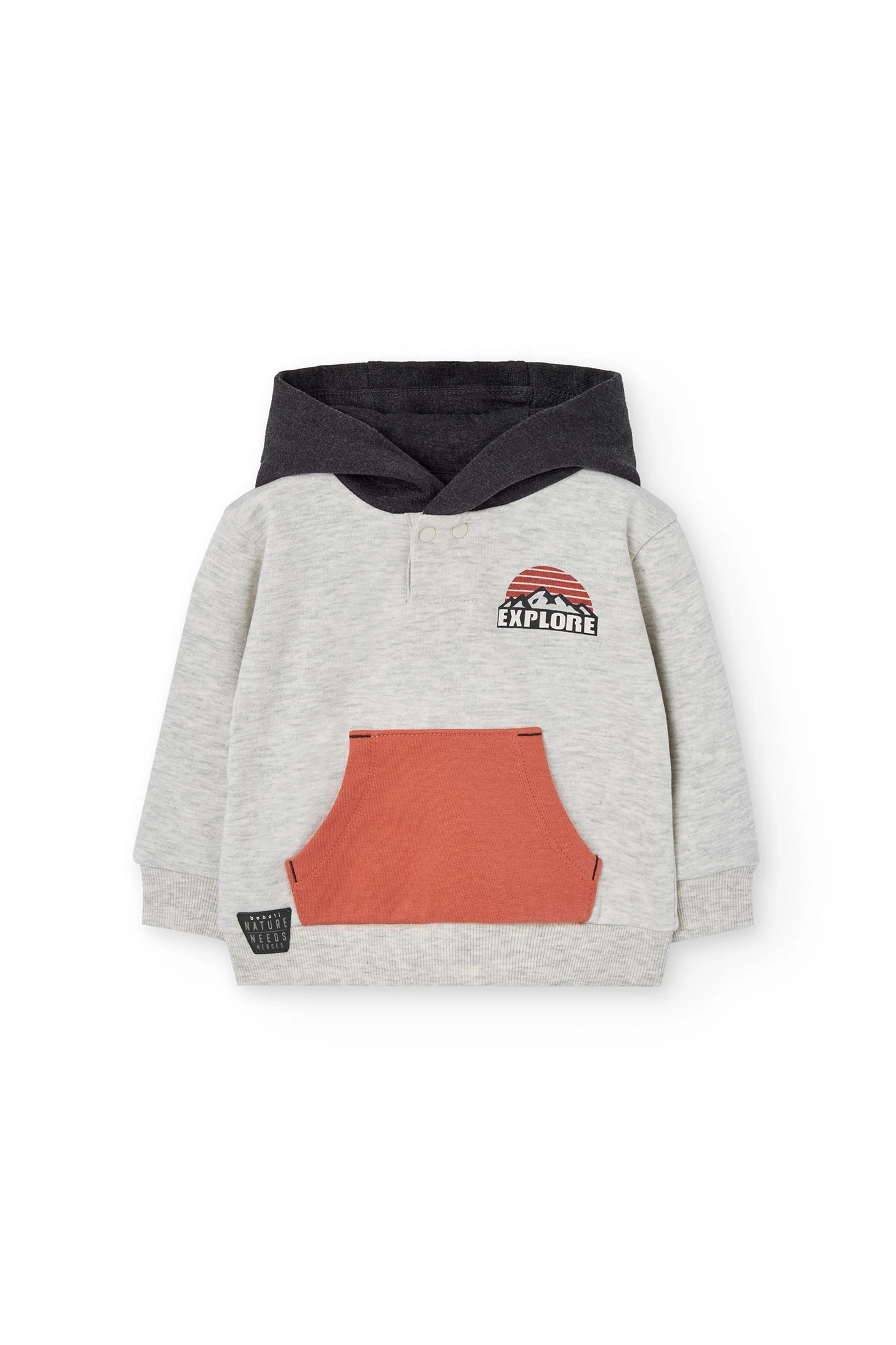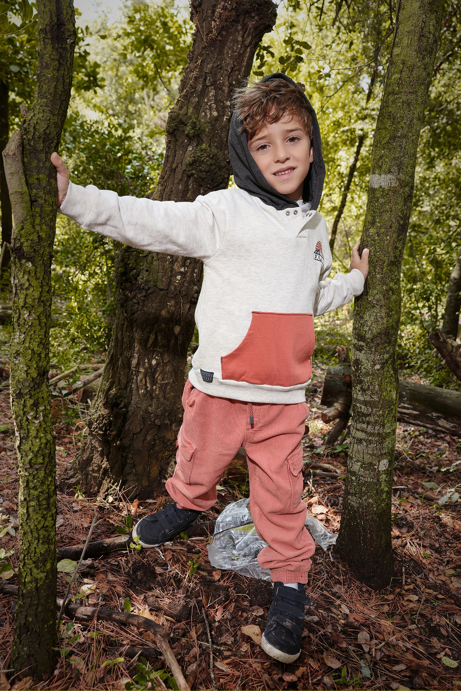Cream-coloured fleece sweatshirt for boys with a hood, perfect for the autumn and winter seasons. Made from soft and warm fleece, it ensures comfort and style. Attractive design with a pocket that adds a modern and cheerful touch to your little one's wardrobe. Available in sizes from 12 months to 10 years, it easily pairs with trousers or jeans for a casual and comfortable look. An essential basic to keep your little one warm and fashionable during the cooler days.