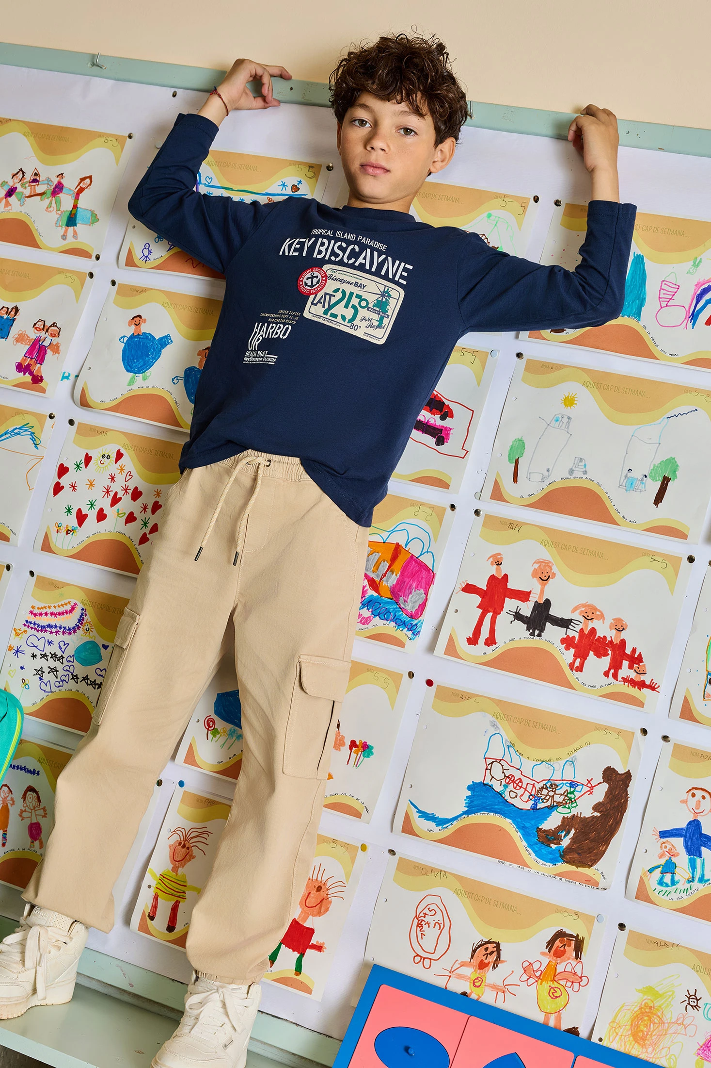 Beige cotton trousers for boys, designed to offer comfort and style for everyday wear. Made from stretch twill, they provide flexibility and durability, perfect for daily adventures. The waistband comes with an adjustable option for a comfortable and secure fit. Available in sizes 2 to 14 years, they are ideal to pair with t-shirts, shirts, or sweatshirts, suitable for any season. A versatile garment that complements both casual and more formal outfits for school activities or family events.
