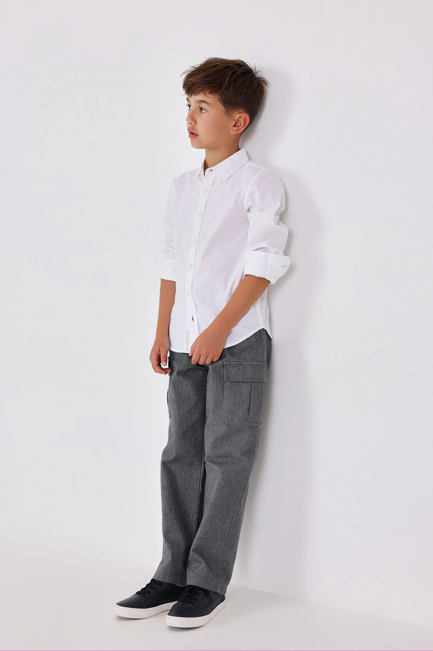 Trousers for boys in dark grey, ideal for the autumn and winter seasons thanks to their soft fabric that provides comfort and warmth. Their classic design includes an elastic waistband that ensures a comfortable fit for the little ones. Available in sizes from 2 to 14 years, these trousers are a versatile option that easily pairs with T-shirts and jumpers, perfect for daily wear or casual events.