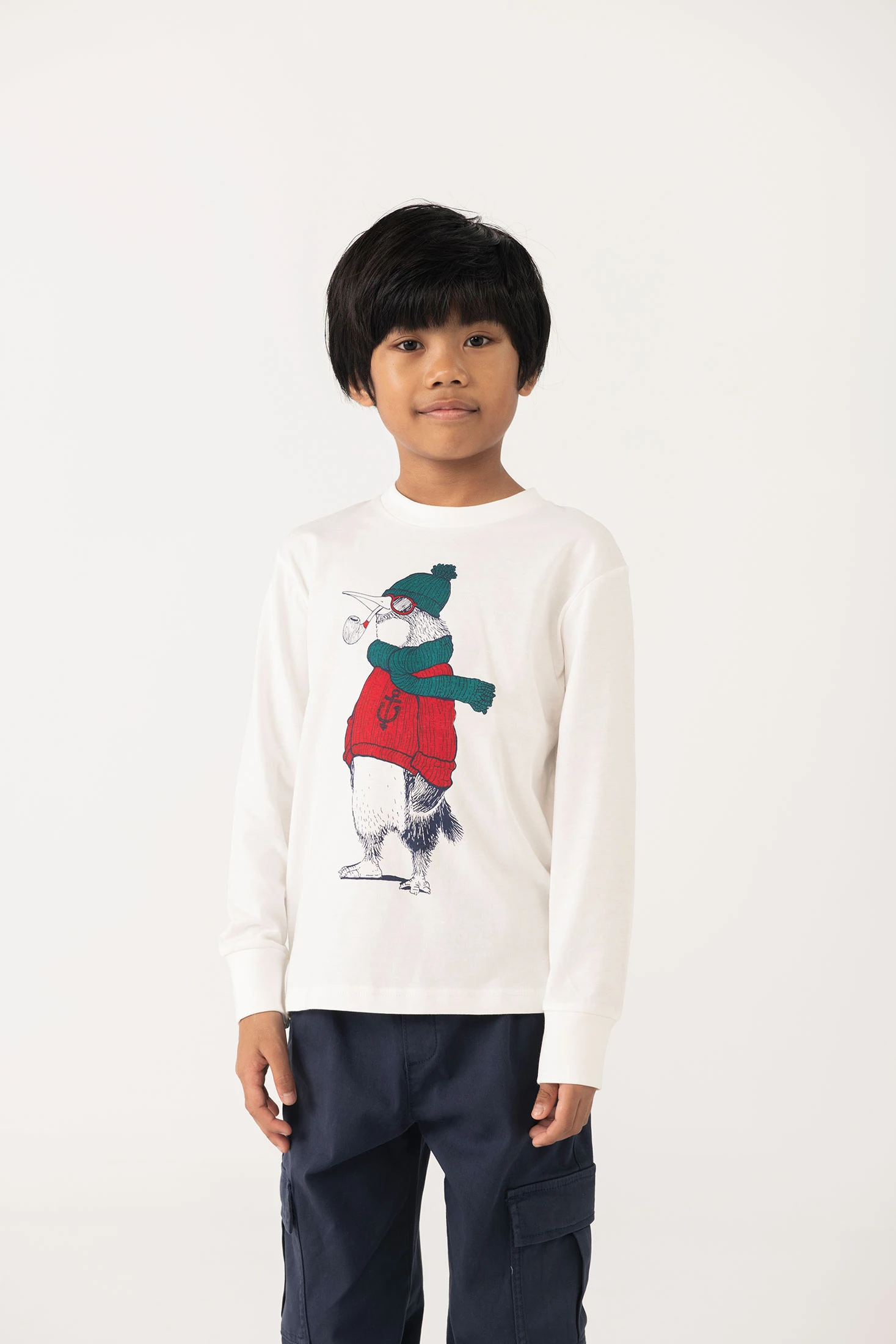 White knit T-shirt for boys, an essential and versatile garment for any season. Made from a soft knit fabric, it offers the necessary comfort for your child's daily activities. Its neutral white colour is easy to pair with a variety of trousers and jackets, allowing for fresh and modern styles. Available in sizes from 2 to 14 years, it provides a perfect fit during growth. Ideal for creating casual and comfortable looks, it is a smart choice for parents seeking quality and style in children's clothing.