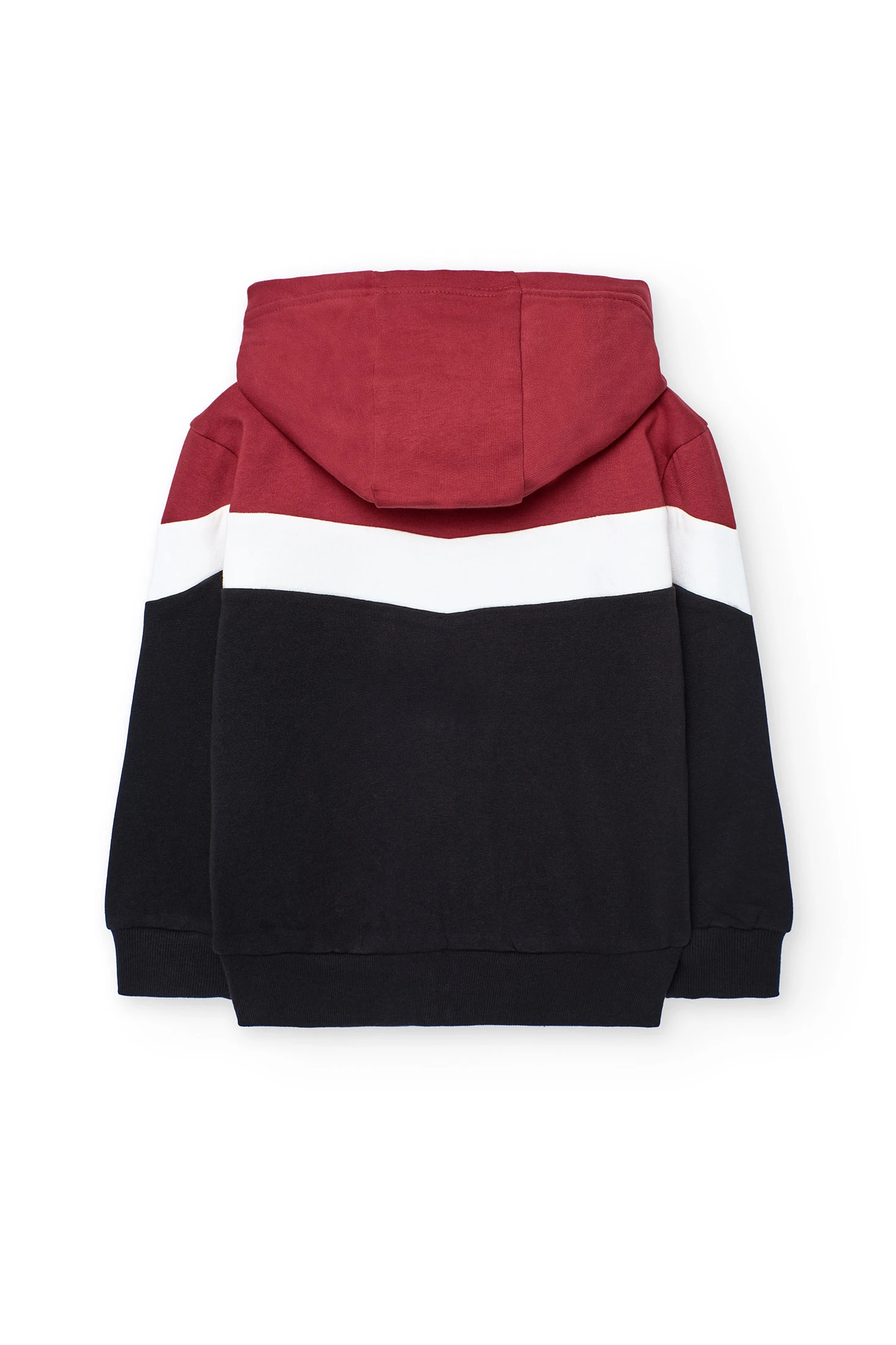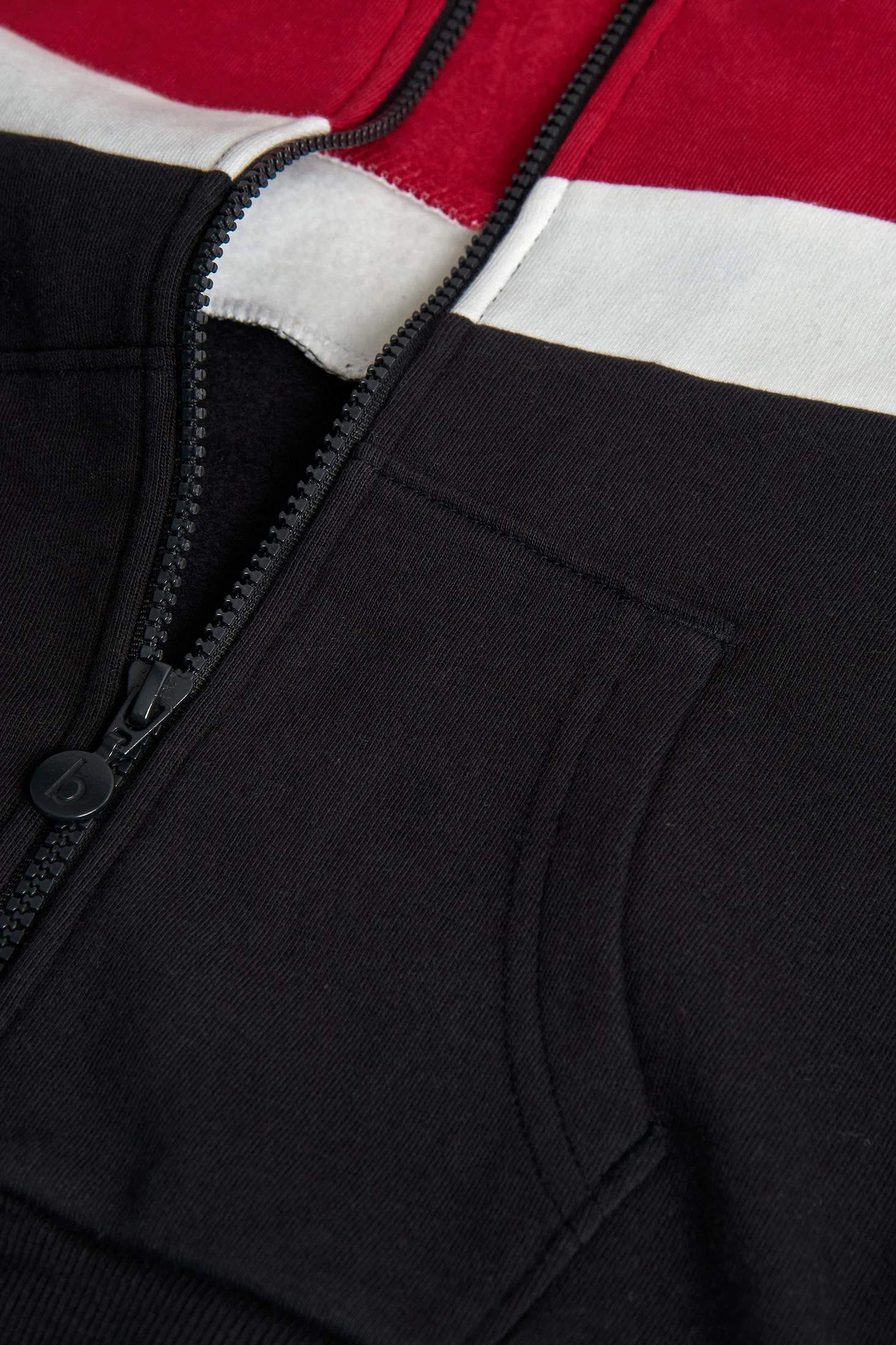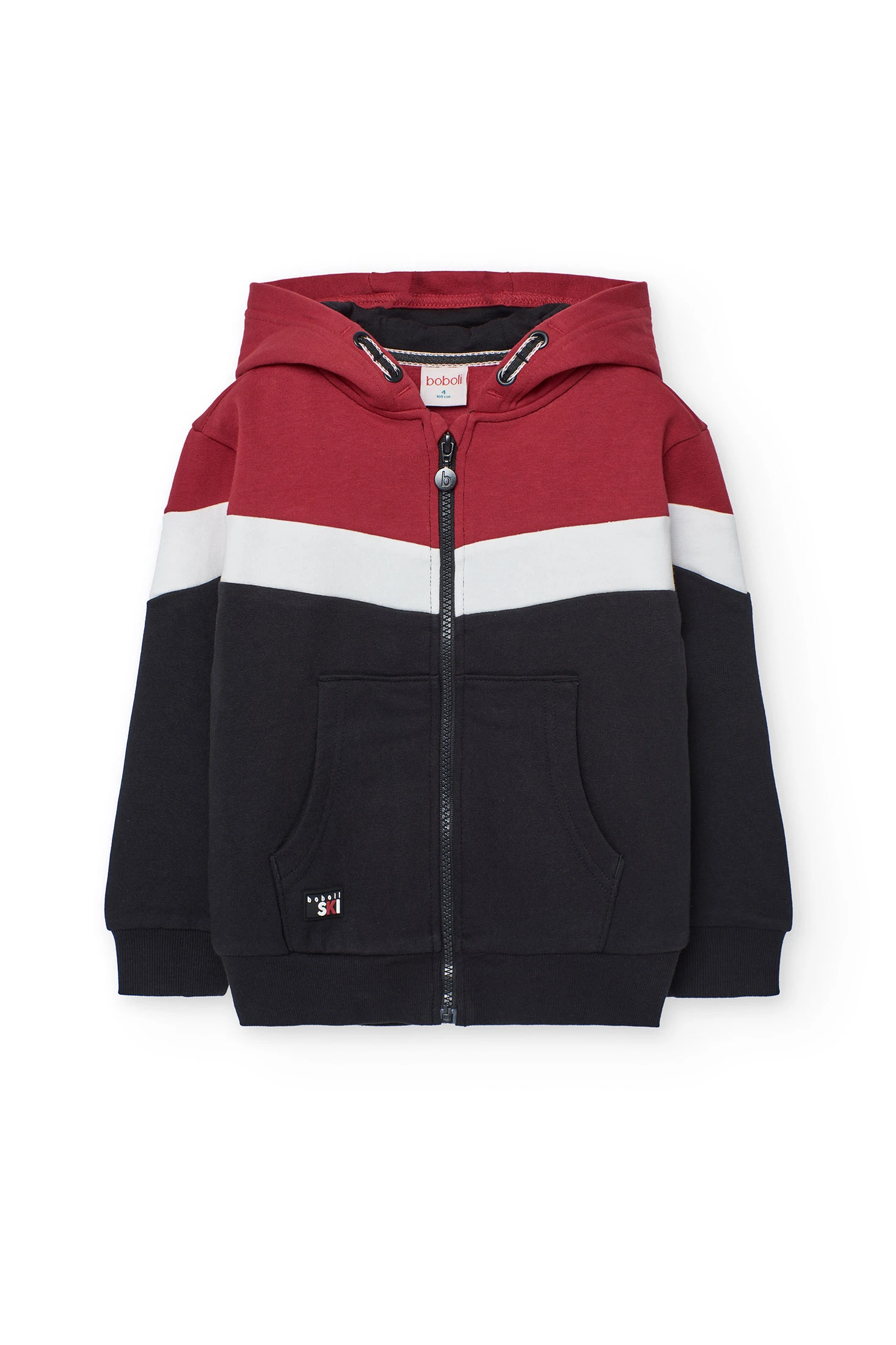 Boy´s jacket in black, red, and white fleece.