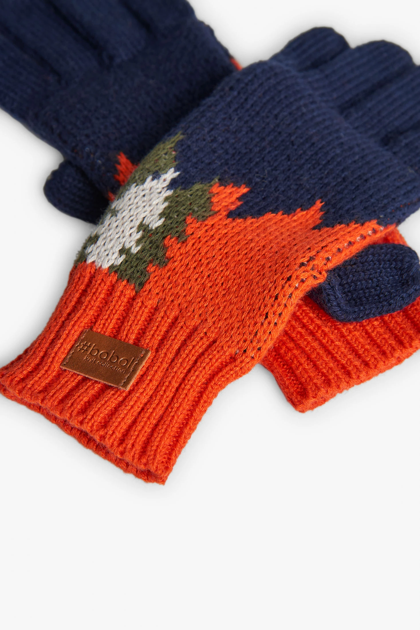 Navy blue knitted gloves feature a charming design of trees in green, orange, and white tones. Perfect for boys and girls during the autumn and winter season, they provide warmth and comfort on cold days. Made from a soft fabric that ensures a cosy fit, they are available in sizes M to XXL to suit different ages. Their stylish design makes them a perfect addition to the winter outfit of the little ones, adding a fun and colourful touch.