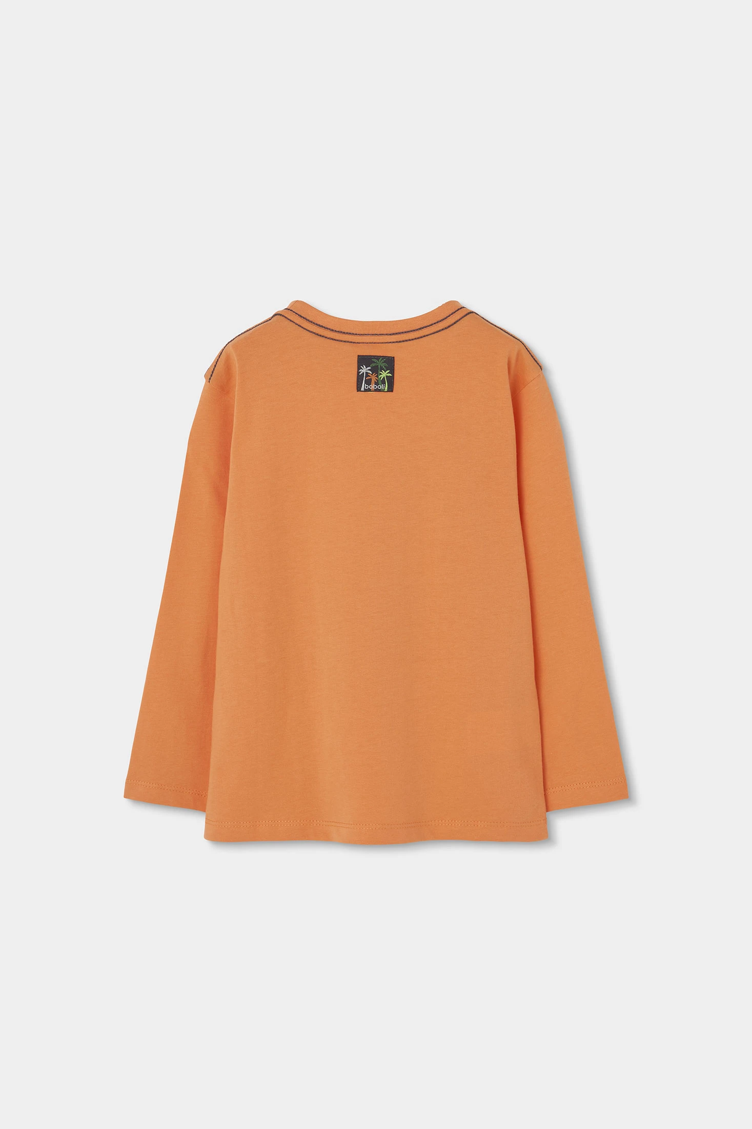 Cotton T-shirt for boys, ideal for the warm seasons. In orange, it features a large print. Its cotton fabric ensures freshness and comfort, perfect for daily use. Available in sizes from 12 months to 10 years, it offers flexibility to accommodate your child?s growth. With long sleeves, the classic cut and round neckline make it easy to pair with different clothing styles, adding a fun touch to his daily outfit.