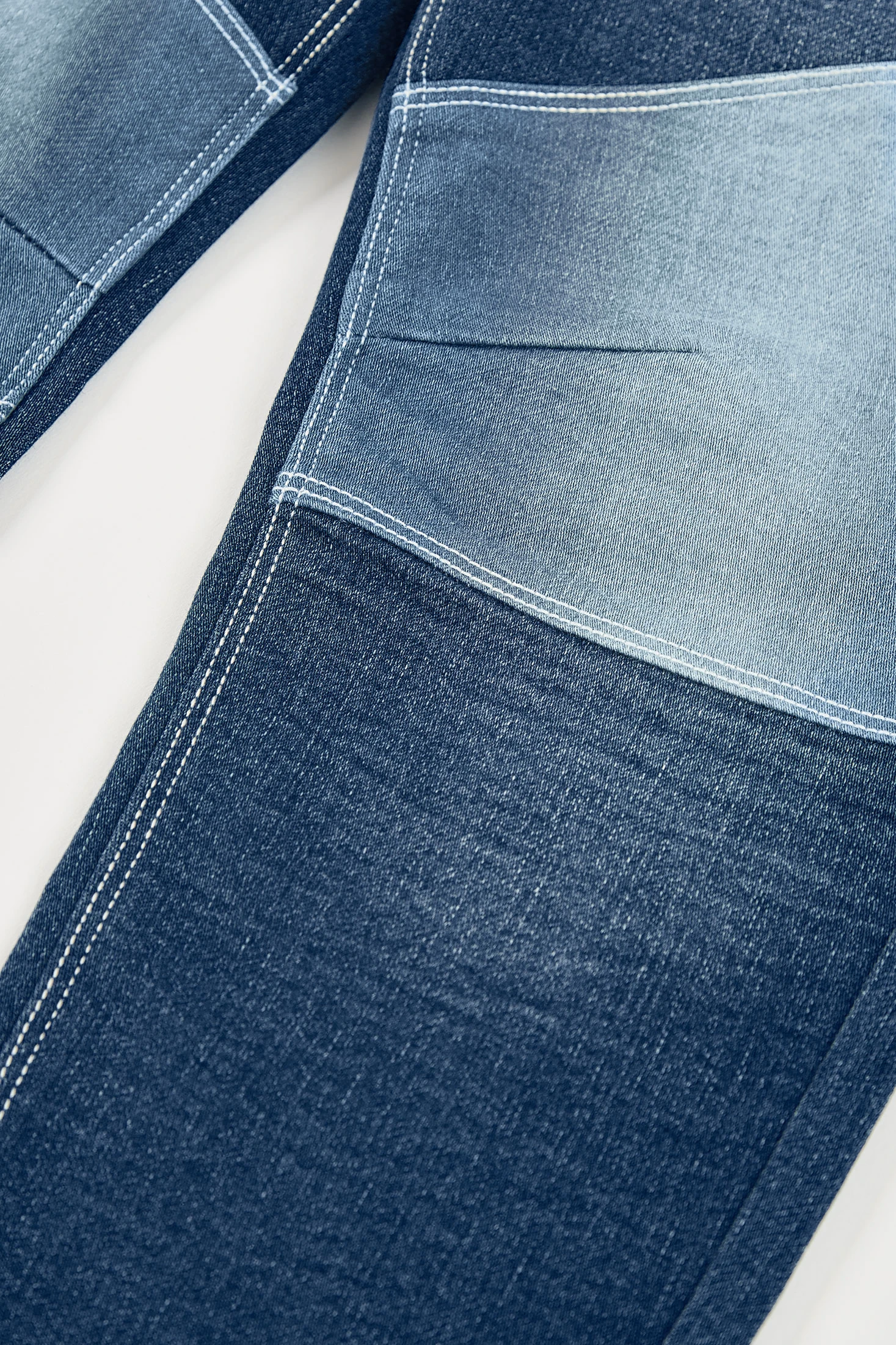 Blue denim trousers for boys, ideal for all seasons. Made from a durable material, they combine comfort and longevity. The design features an elastic waist with an adjustable drawstring, providing a comfortable and secure fit. Knee panels add a modern twist to the classic style. Available in sizes from 12 months to 10 years, accommodating the child's growth. Perfect for pairing with shirts and T-shirts, these trousers are a versatile choice for any casual occasion.