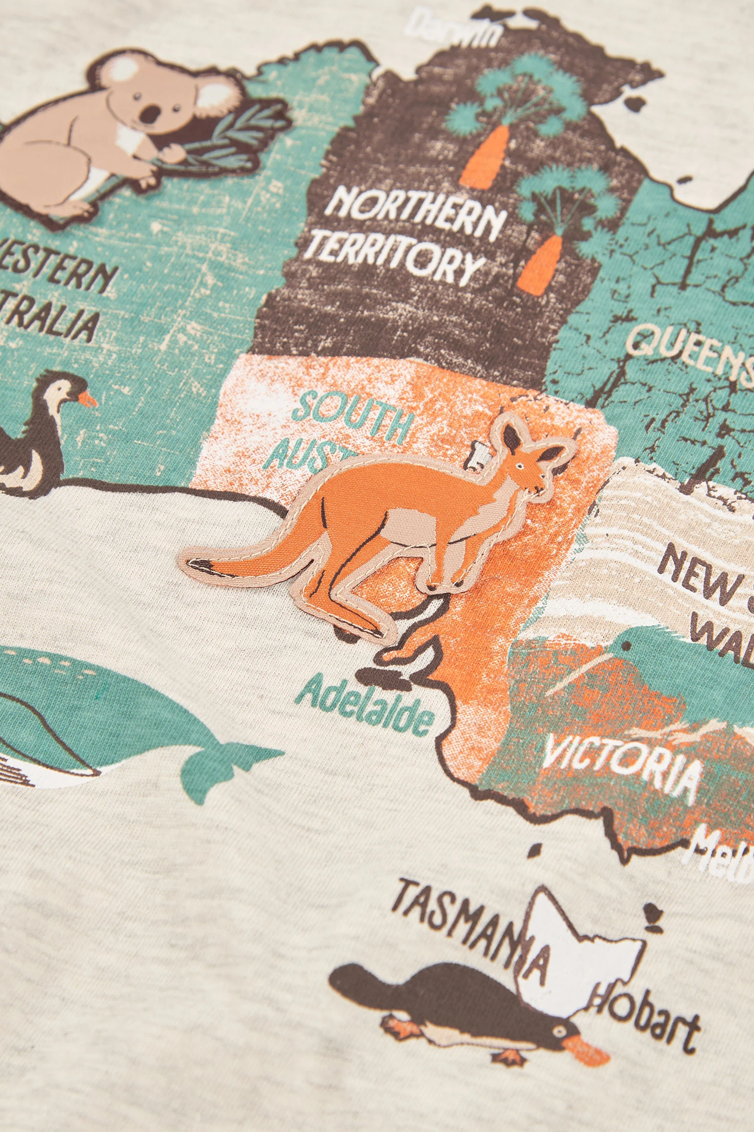 Long-sleeved knitted T-shirt for boys made of beige cotton, perfect for cooler summer and spring days. It features a colourful animal print. Crafted from a soft fabric, it ensures comfort and flexibility for everyday wear. Available in sizes from 12M to 10 years. Its versatile design is ideal for pairing with jeans or casual trousers, adding a playful touch to any outfit.