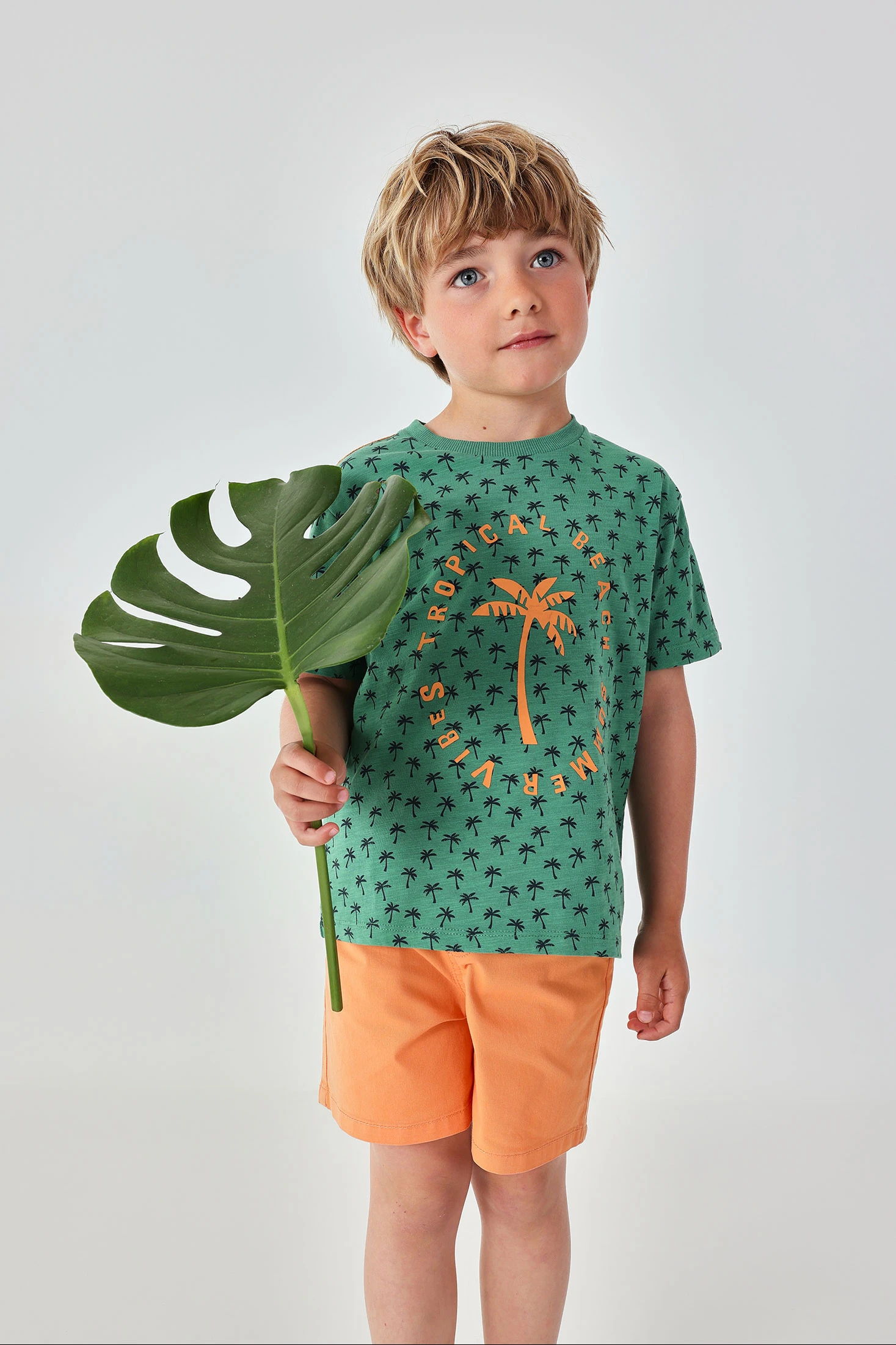 Cotton orange bermuda shorts, perfect for warm days. Their simple and comfortable design includes an elastic waist with adjustable drawstrings, allowing for a perfect fit. With a classic cut, they are ideal for pairing with t-shirts and lightweight shirts. Available in sizes from 12 months to 14 years, they accommodate children's growth. Their cotton fabric offers freshness and comfort throughout the day, making them an essential summer garment.