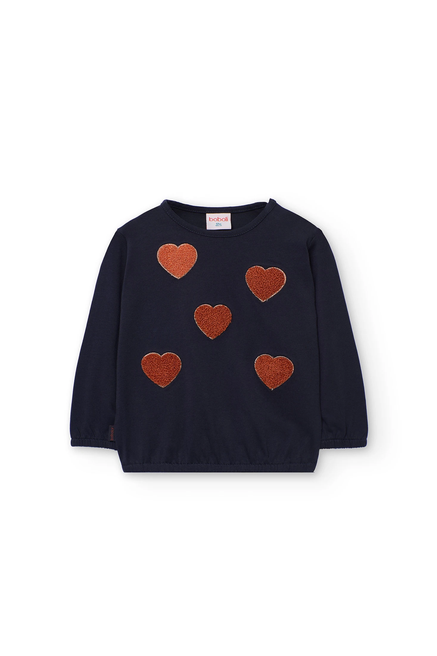 Grey knitted t-shirt for girls, perfect for the autumn and winter seasons, offers comfort thanks to its soft and stretchy fabric. A delightful heart print, round neck and long sleeves make it a warm and versatile option for colder days. Available in sizes from 12 months to 10 years, it is ideal for everyday wear and can be easily paired with leggings or dungarees, providing an adorable and modern look for your little one.