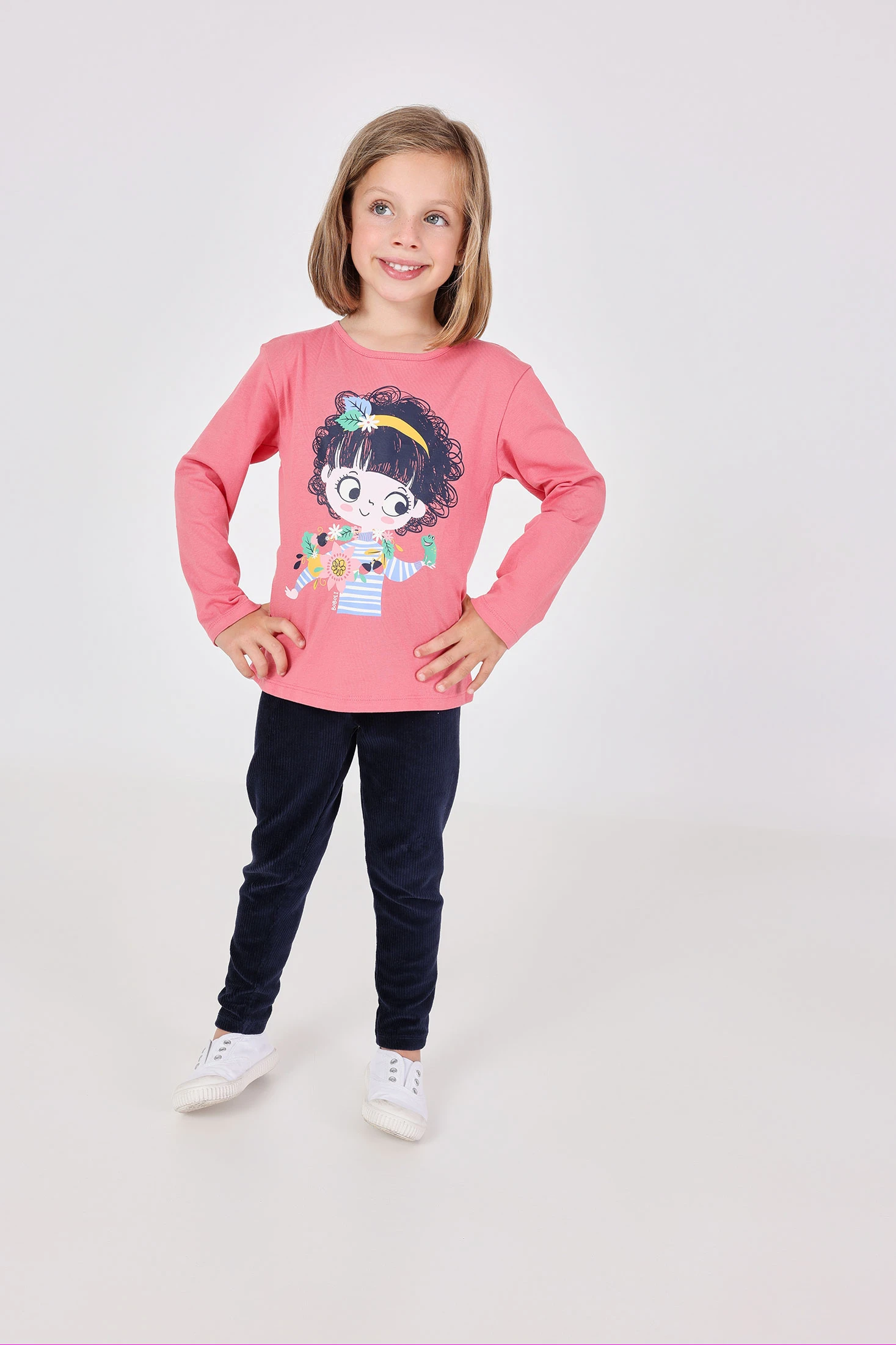 Ribbed corduroy leggings for girls in navy blue, perfect for any season of the year. Made with a soft knit fabric, it ensures comfort and freedom of movement for the little ones. The fresh and versatile navy blue tone allows for easy pairing with dresses, t-shirts, or jackets. The elastic waistband ensures a comfortable and secure fit, ideal for accompanying the baby's growth. Available in sizes from 12 months to 10 years, it is an essential basic in a child's wardrobe.