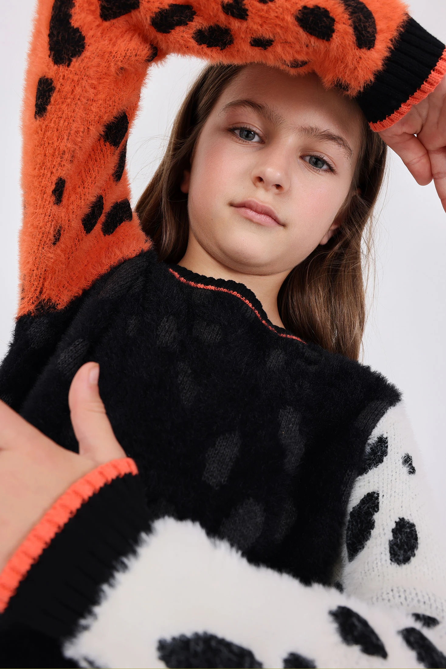 Black dress for girls with sleeves of a different colour, perfect for the autumn and winter seasons. Made from a soft knit fabric, it provides comfort and style on cooler days. It can be easily paired with colourful tights and boots to achieve a chic and cosy look. Available in sizes from 2 to 14 years, this dress is ideal for any occasion, from family events to casual outings. Its classic and timeless design makes it a must-have in a child's wardrobe.