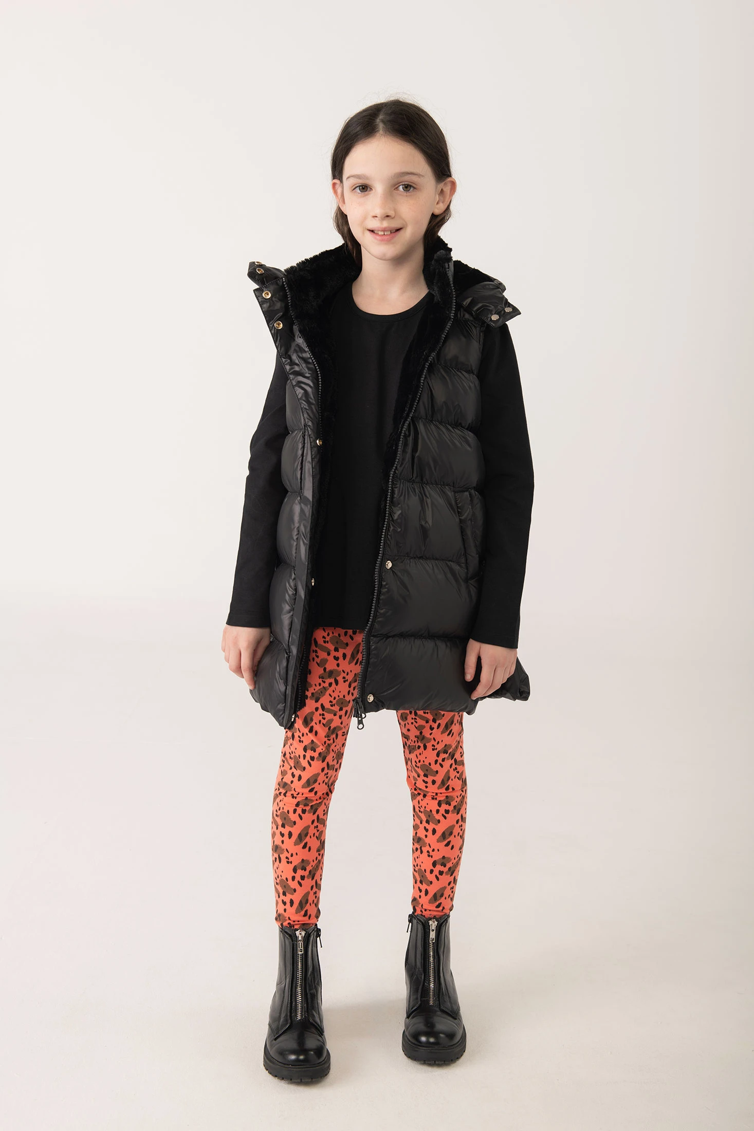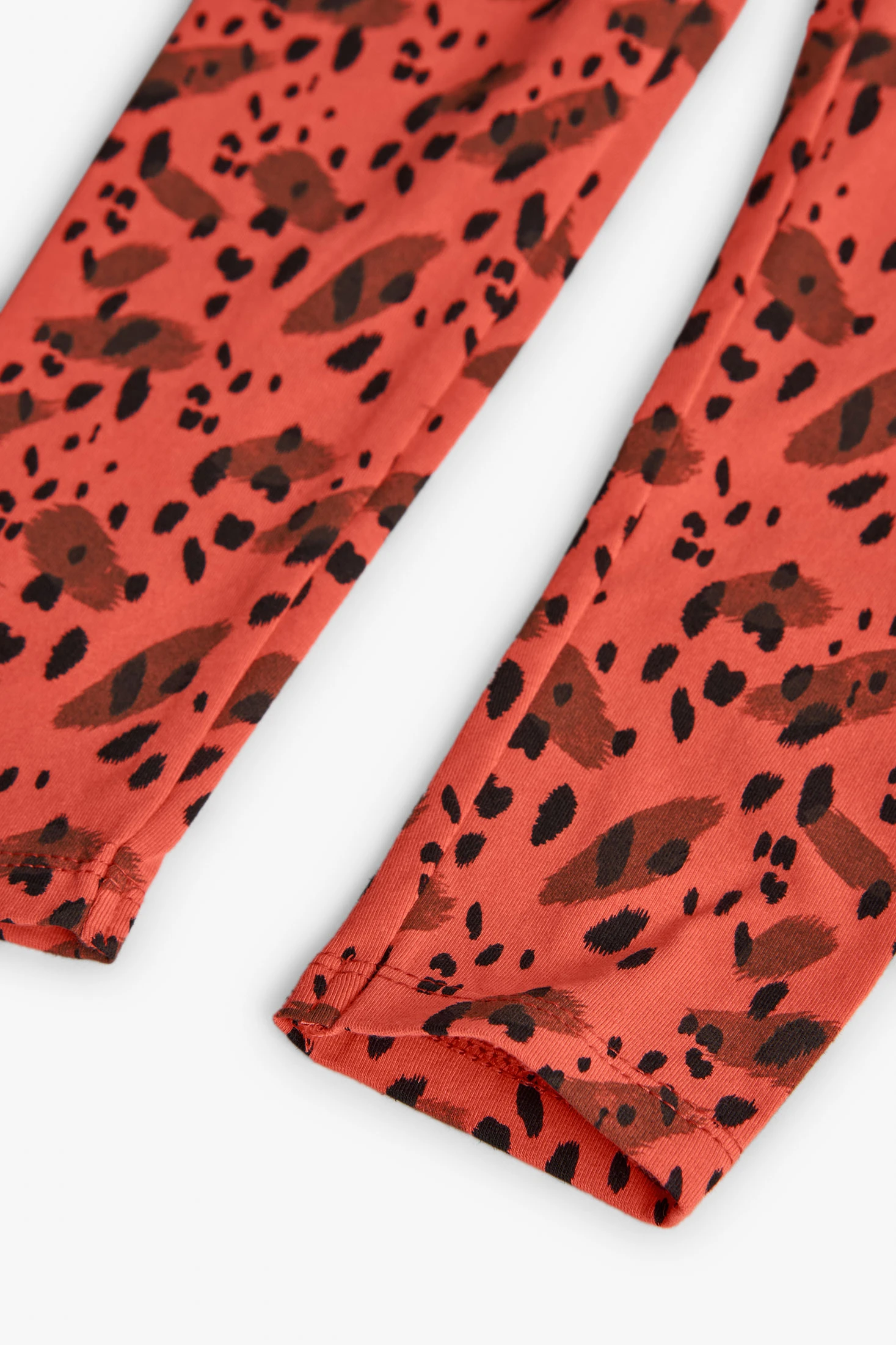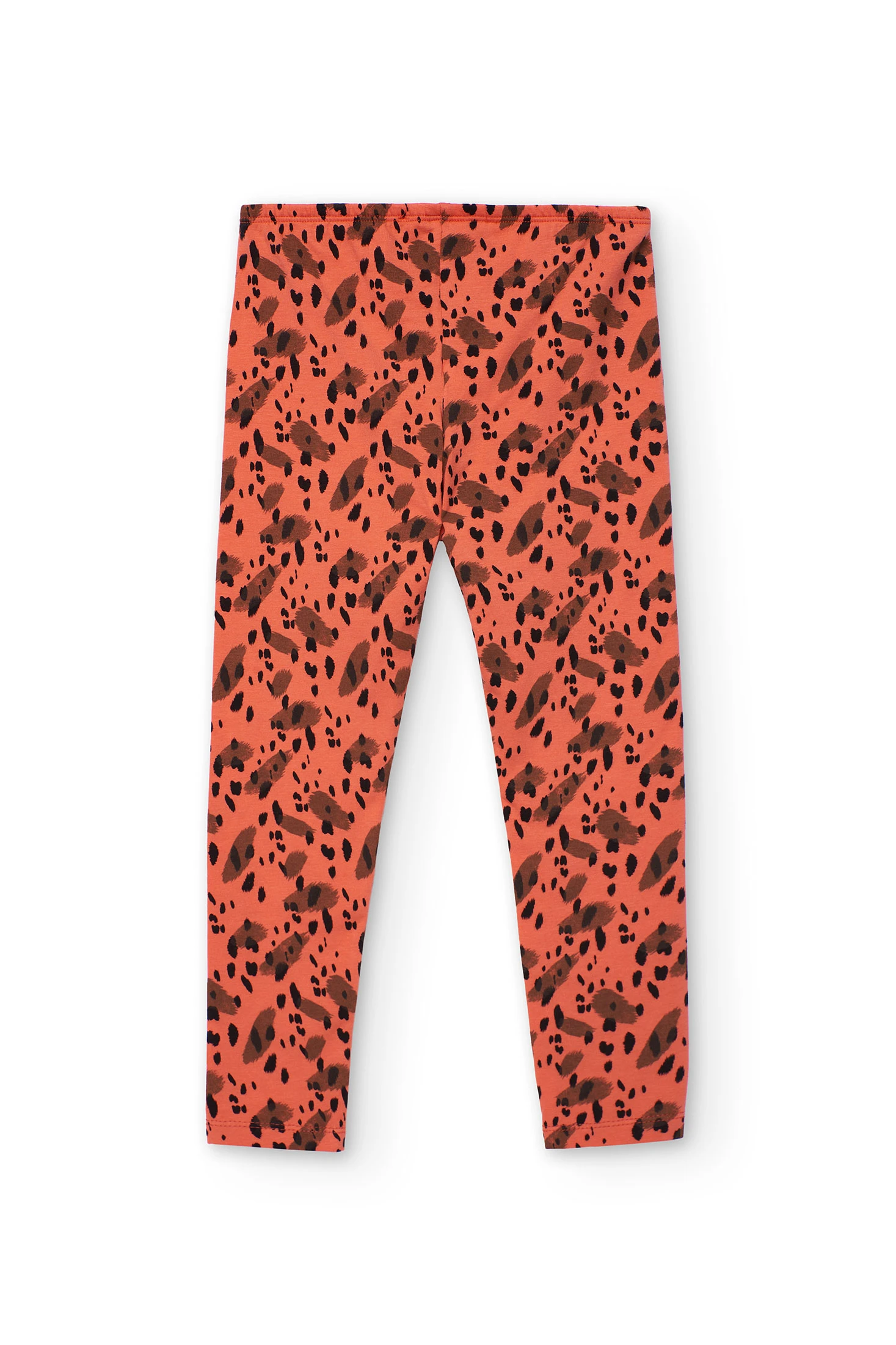 Printed knit leggings are perfect for girls during the autumn and winter seasons. Made from a soft knit fabric, they provide warmth and comfort while offering a playful style thanks to their striking print on a salmon background. Available in sizes from 2 to 14 years, these leggings ensure great freedom of movement, ideal for a casual and modern look. Pair them with jumpers, long-sleeve T-shirts, or jackets to achieve a fresh and functional outfit that will delight both parents and children.