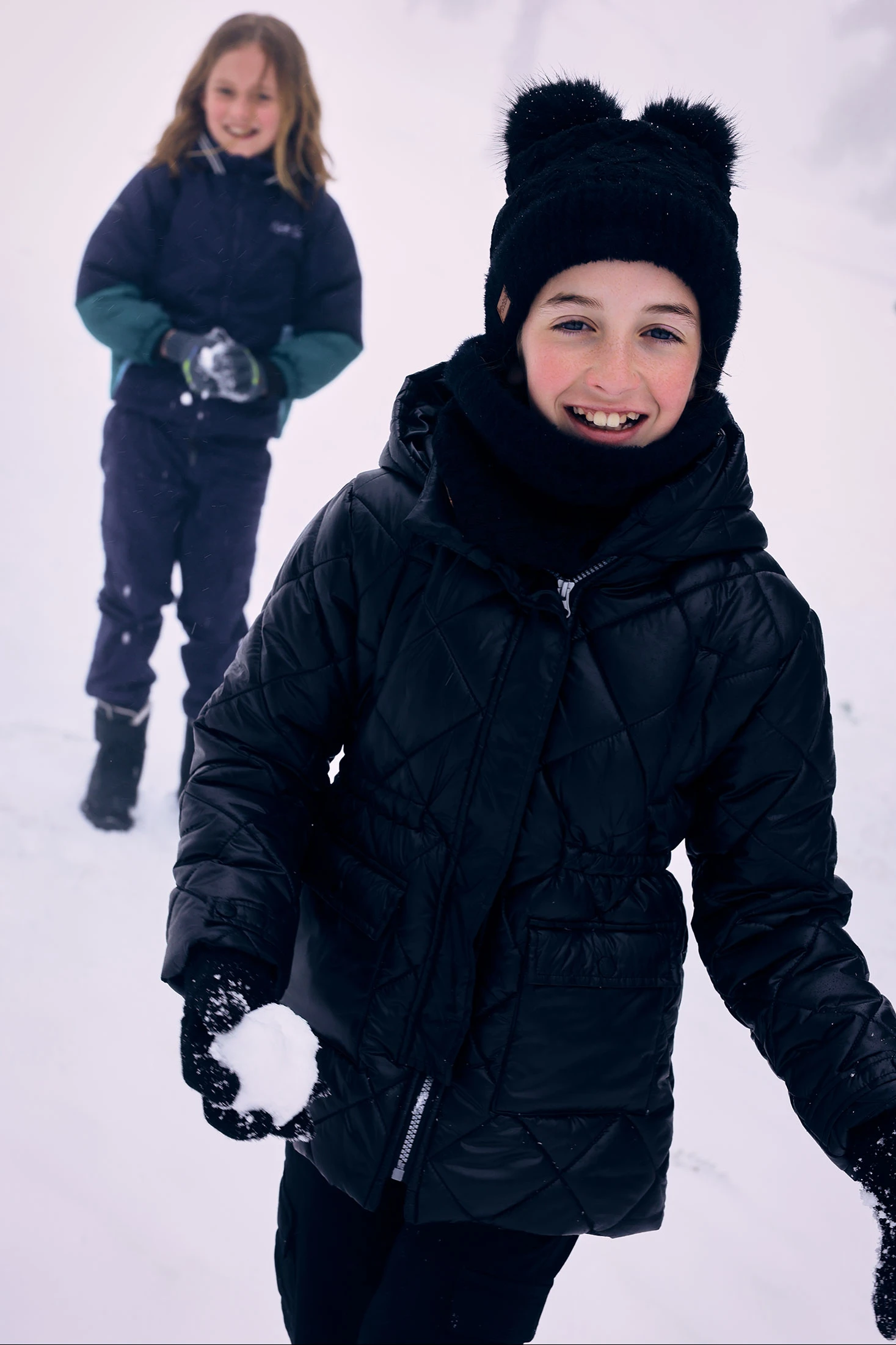 Girl´s parka in black technical fabric
