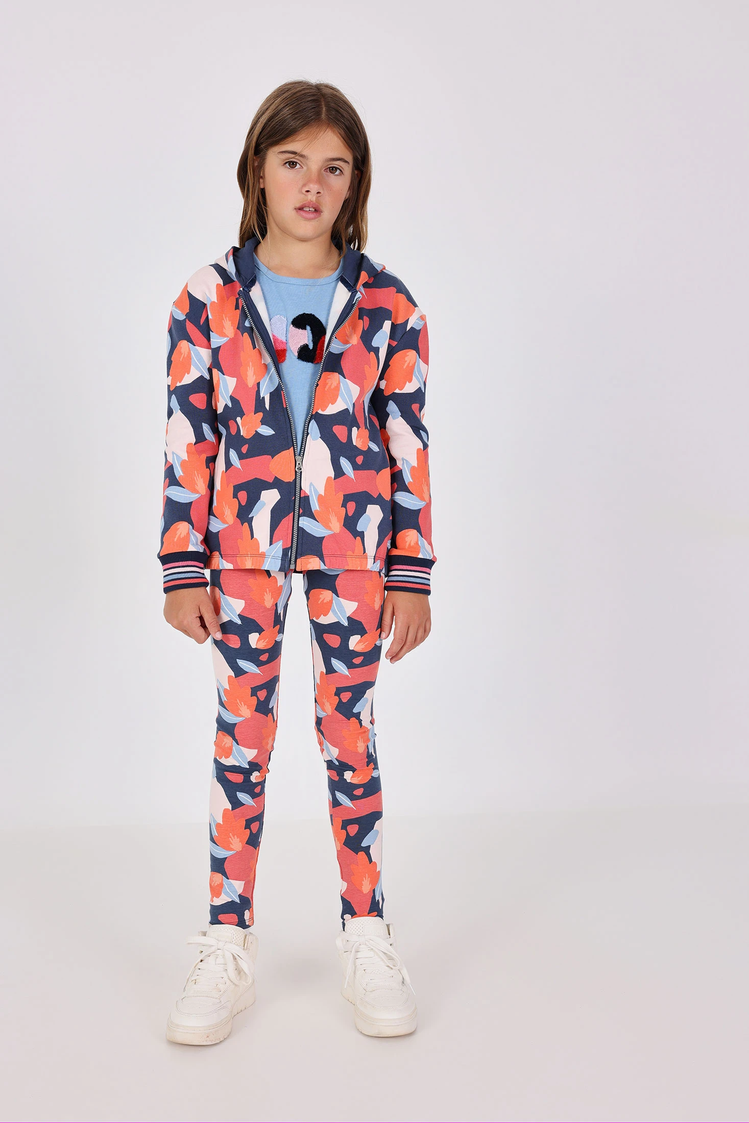 Elastic knit leggings in blue with a floral design for girls, add an artistic and modern touch to children's outfits. Perfect for any season, these leggings offer comfort and flexibility thanks to their soft and adaptable fabric. Available in sizes from 2 to 14 years, they are ideal for pairing with T-shirts, dresses or jumpers, creating versatile and fashionable ensembles. An essential piece in children's wardrobes that allows for play or rest with complete freedom of movement.