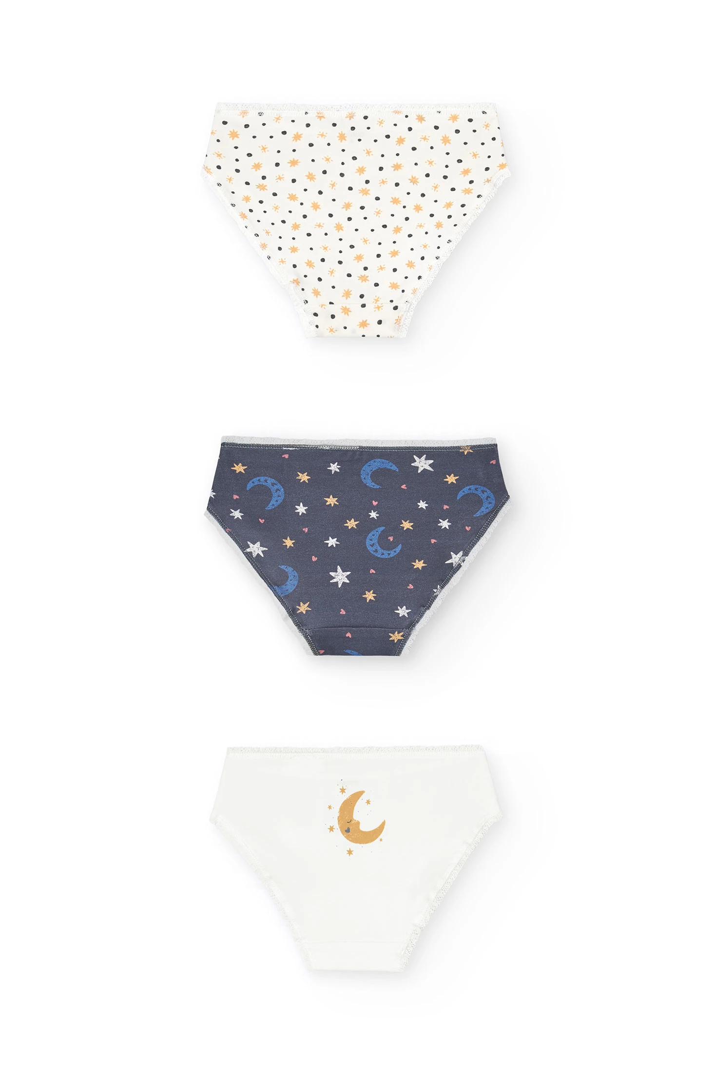 Pack of star-patterned briefs adds a touch of fun to children's wardrobes. Crafted in a soft and durable knit fabric, they ensure all-day comfort. Perfect for daily wear, they are available in sizes from 2 to 14 years. The vibrant star prints make them easy to pair with other pieces from the children's collection. They guarantee quality and an appealing design that will delight both boys and girls.