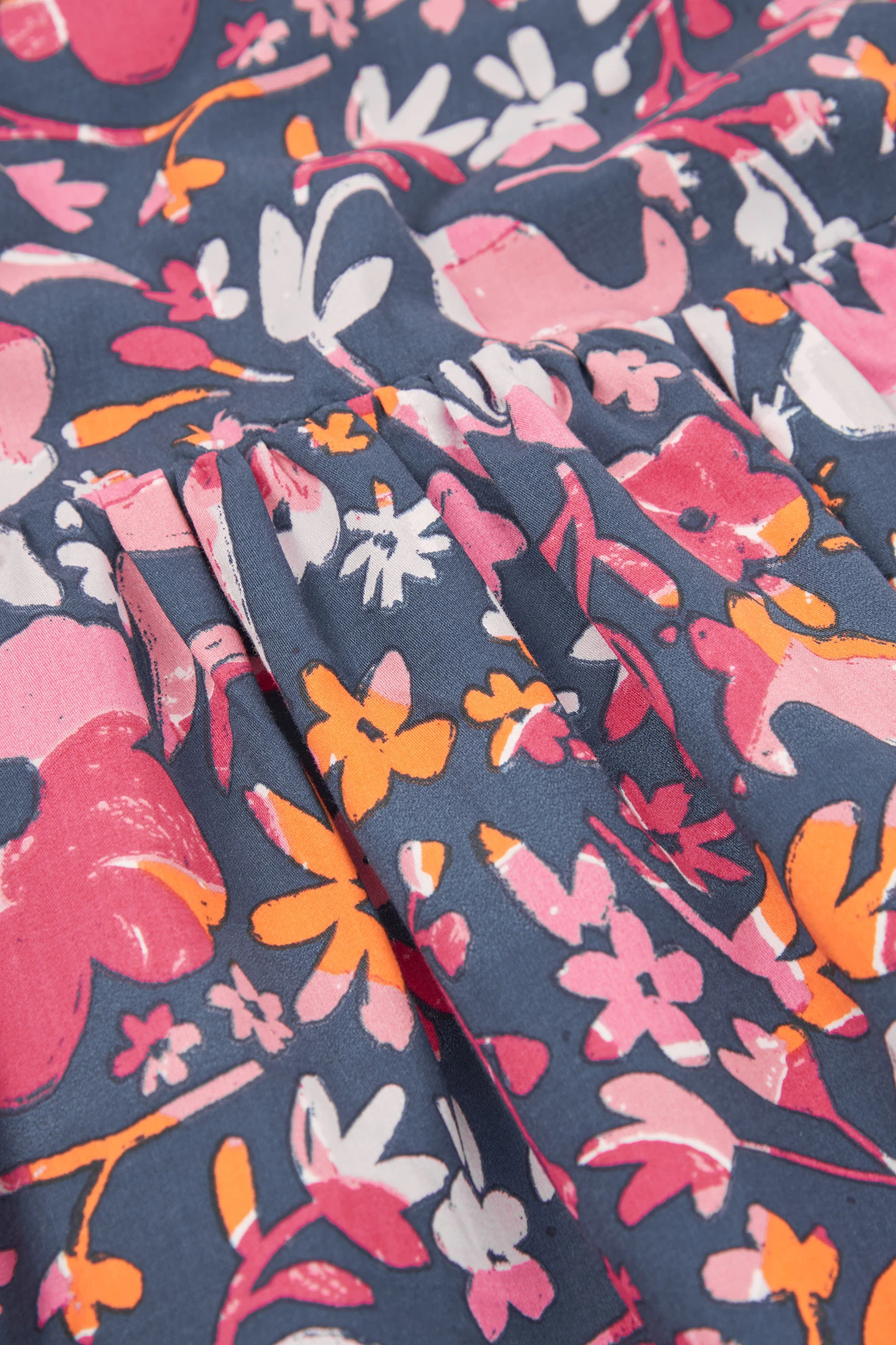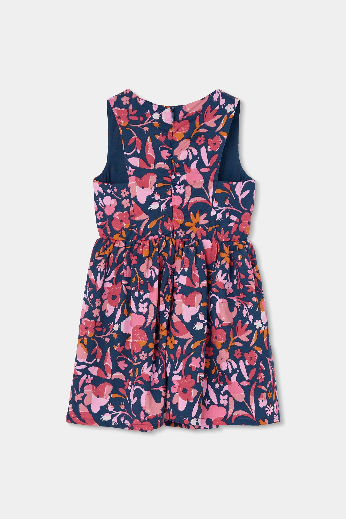 This sleeveless dress for girl is decorated with a vibrant floral print in shades of pink and blue. Made in a soft and lightweight fabric, it is ideal for casual occasions and special events. Perfect for ages from 6 months to 14 years, its fresh and colorful design is easy to combine with cardigans or jackets on cool days. Its wide cut provides comfort and freedom of movement, making it a practical and charming option for any children’s wardrobe.