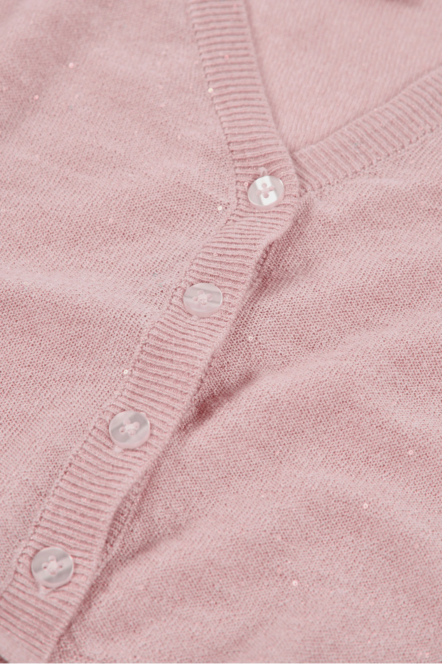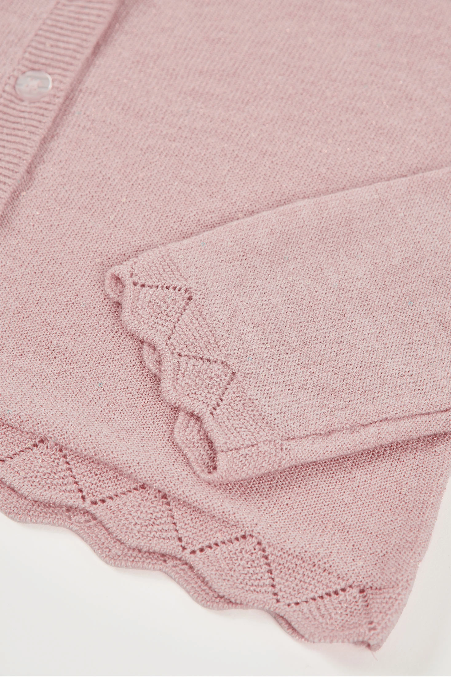 Knitted cardigan for girls, ideal for spring and summer. Crafted in orchid-coloured knit fabric, it provides warmth and comfort. The design features front buttons and a scalloped edge that adds an elegant touch. Available in sizes from 12 months to 10 years. Its neutral colour allows it to be easily paired with different outfits, making this garment a versatile and practical choice for a child's wardrobe.