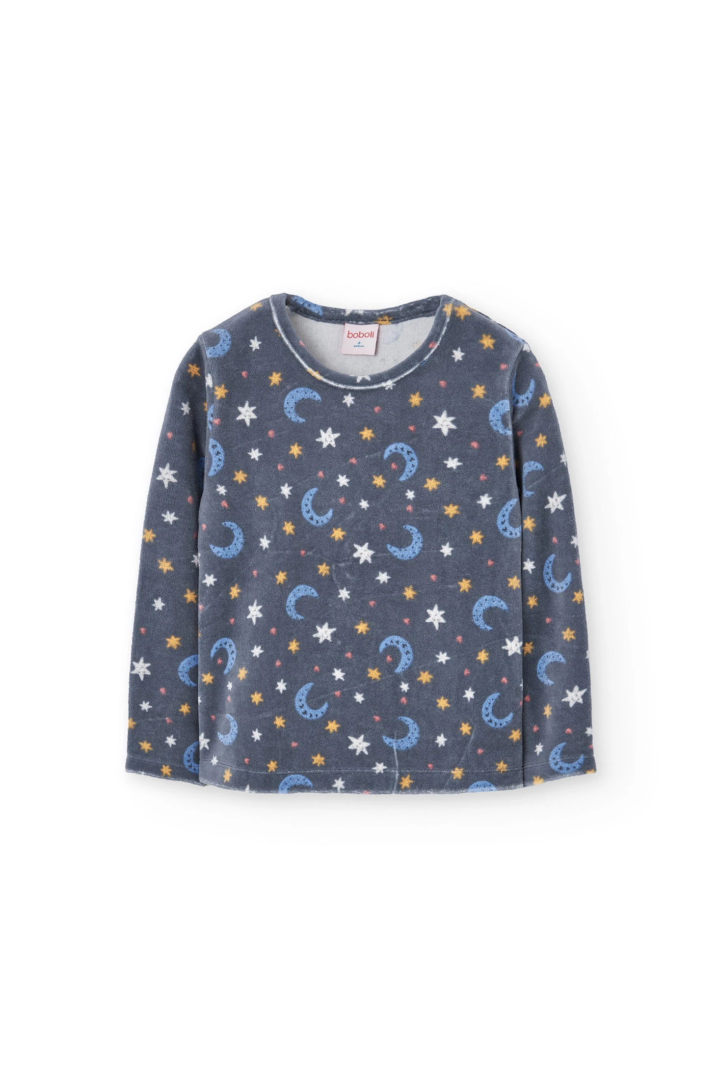 Velvet pyjamas for girls, perfect for winter nights, offering exceptional warmth and softness. The design features adorable stars and moons, creating a cosy and magical environment for relaxing. It includes a long-sleeve top and cuffed trousers, ensuring a comfortable and secure fit throughout the night. Available in sizes from 2 to 14 years, it is the perfect choice to keep your daughter comfortable and snug at all times.